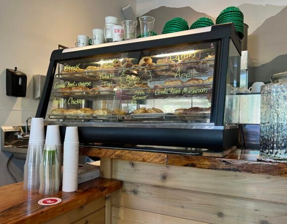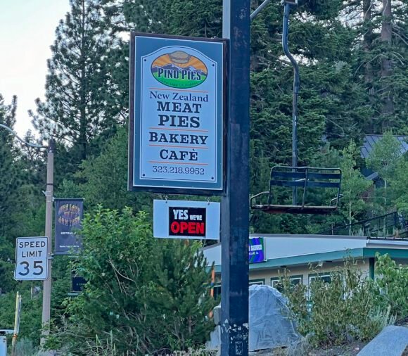I needed a bit of breakfast, so we walked over to Pino Pies. This used to be the Lift which was our stop for coffee in June Lake, but now the place specializes in Meat Pies….and coffee.