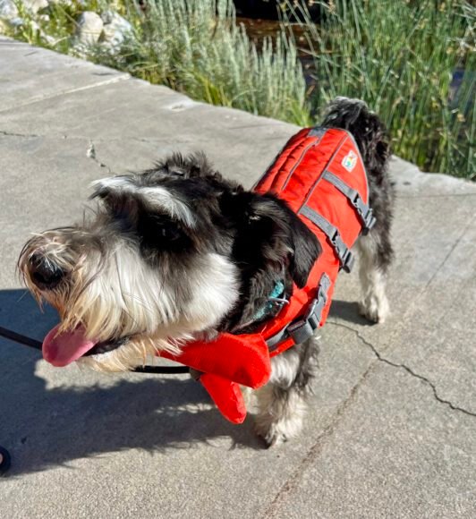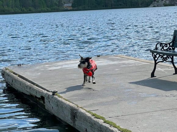 And he was a champ! In fact, I have a video somewhere of folks hanging around on the dock…they asked us if this was his first time swimming and we said “affirmative”. Well guess what? They were all cheering him on!