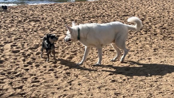 You end at Nevada Beach. I had read that there’s a portion of the beach on the south side that was dog friendly. And we found signage that indicated where it was.