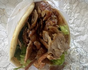 It was quite hefty. At first bite, I knew this wasn’t typical. The “bread”…this was closer to a tortilla than something coming off the “sajj”. It was chewy, not warm enough. The chicken was on the tougher side, not really Shawarma in flavor…lacking in savory-herbaceous aromatics….you could take this chicken and put it in a tortilla with some salsa and call it a burrito.