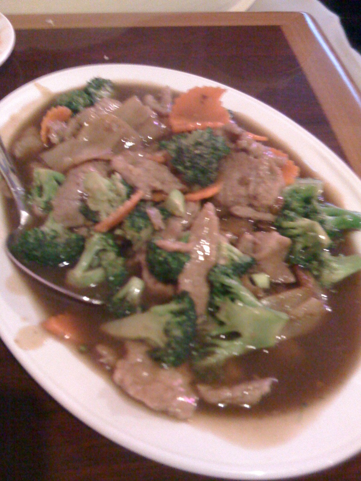 The wide rice noodles were just a touch pan fried and slightly crispy and very nice. The sauce was excellent and complimented the beef.
