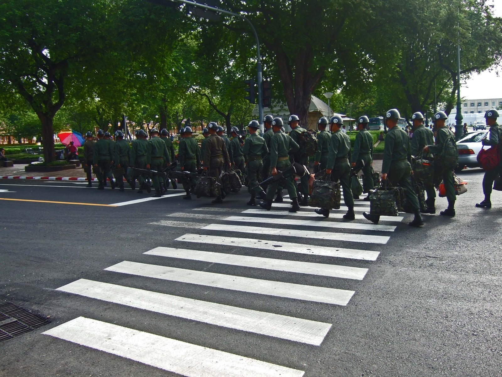 We arrived at the gates of Wat Phra Kaew and the Grand Palace a bit early. And saw this procession of soldiers walking across the street.