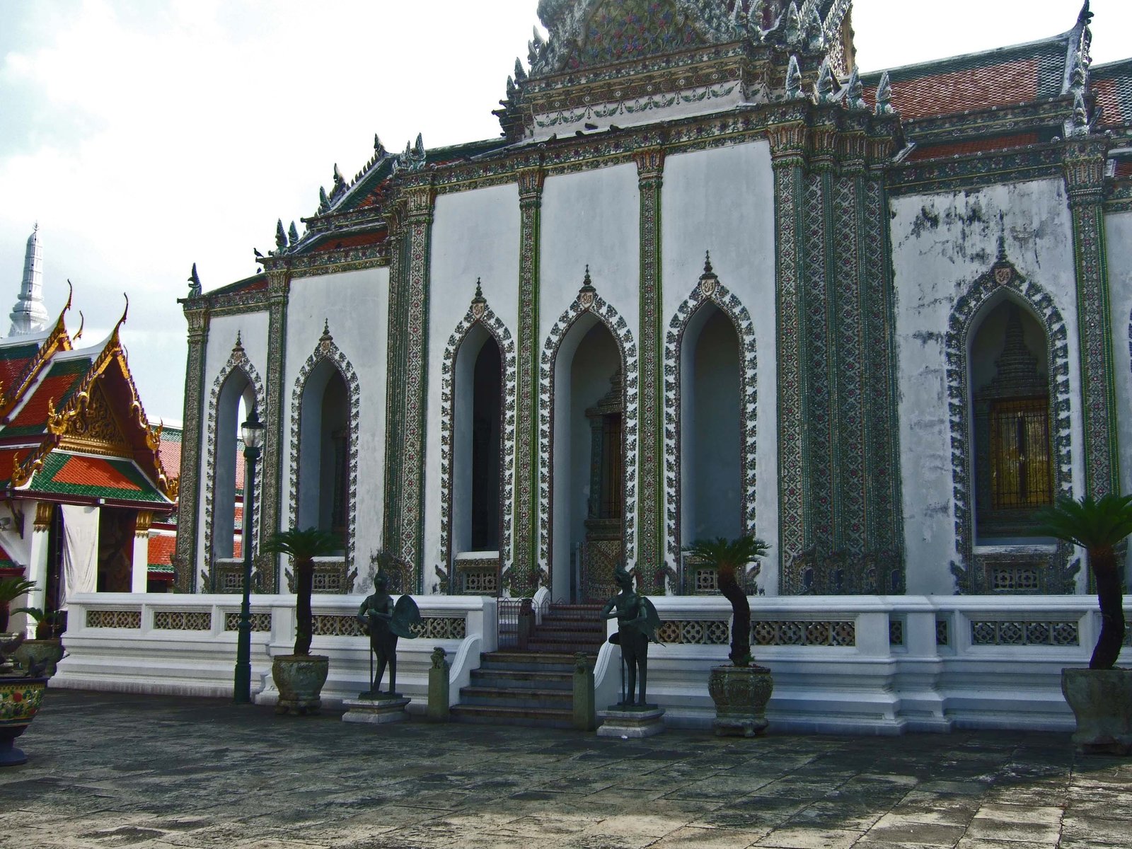 After paying the almost $10 entrance fee, we made our way into Wat Phra Kaew. I really loved the outline of the Stupa and various Temples against the Bangkok sky.