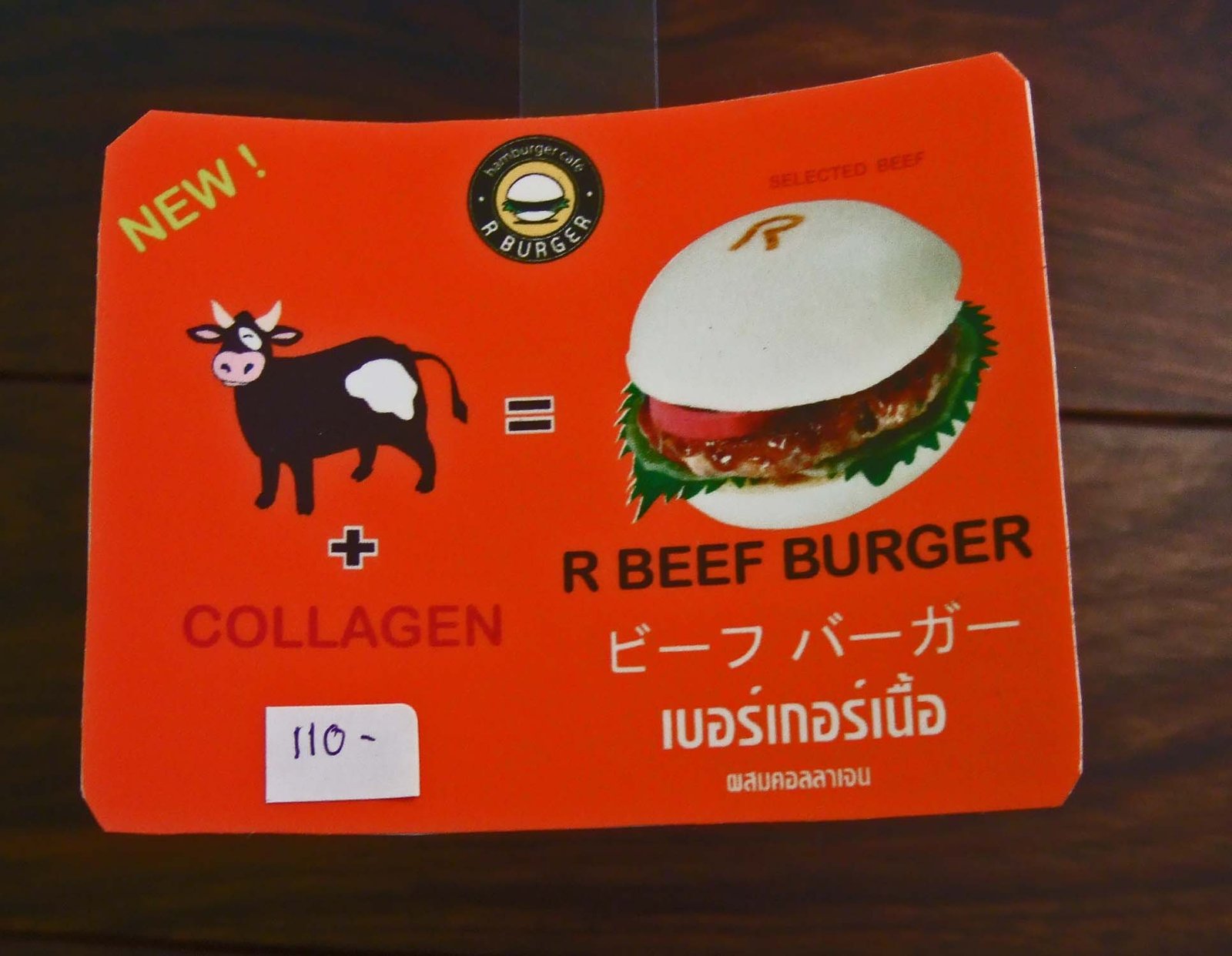 It is called 'R Burger', and is a Roppongi based Japanese-style "burger joint". If you are used to American burgers……the term burger is used in a rather loose context here. "Chicken burger garnished with Shiso and Ume dressing" anyone? How about a salad "stick"…..basically a Japanese riff on a Vietnamese spring roll. The burgers were pork, chicken, maguro….and announcing the newest addition to the R Burger line-up…the novel concept of a beef burger! (Looks like they are made from one-eyed cows, huh?)