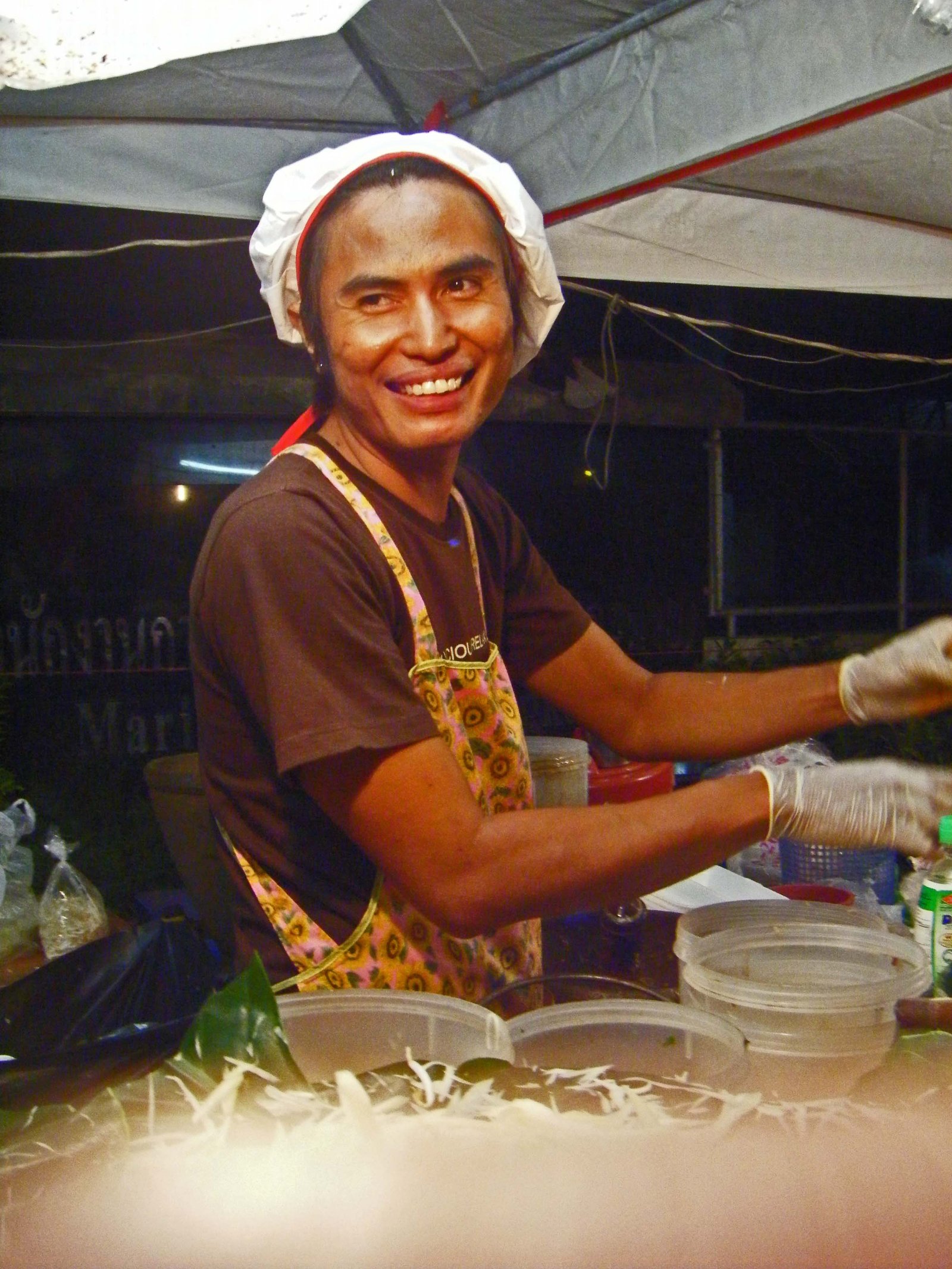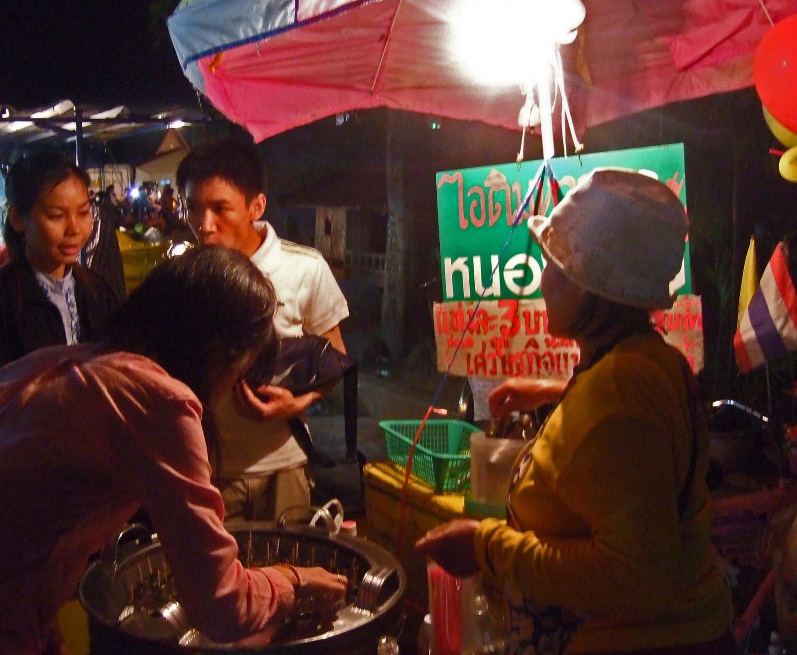 The Missus went with a Papaya Salad from the smiling young man to the right. Quite pungent, with a bunch of fermented fish paste, it met the expectations of fair food. Nothing outstanding, but it quelled our hunger.