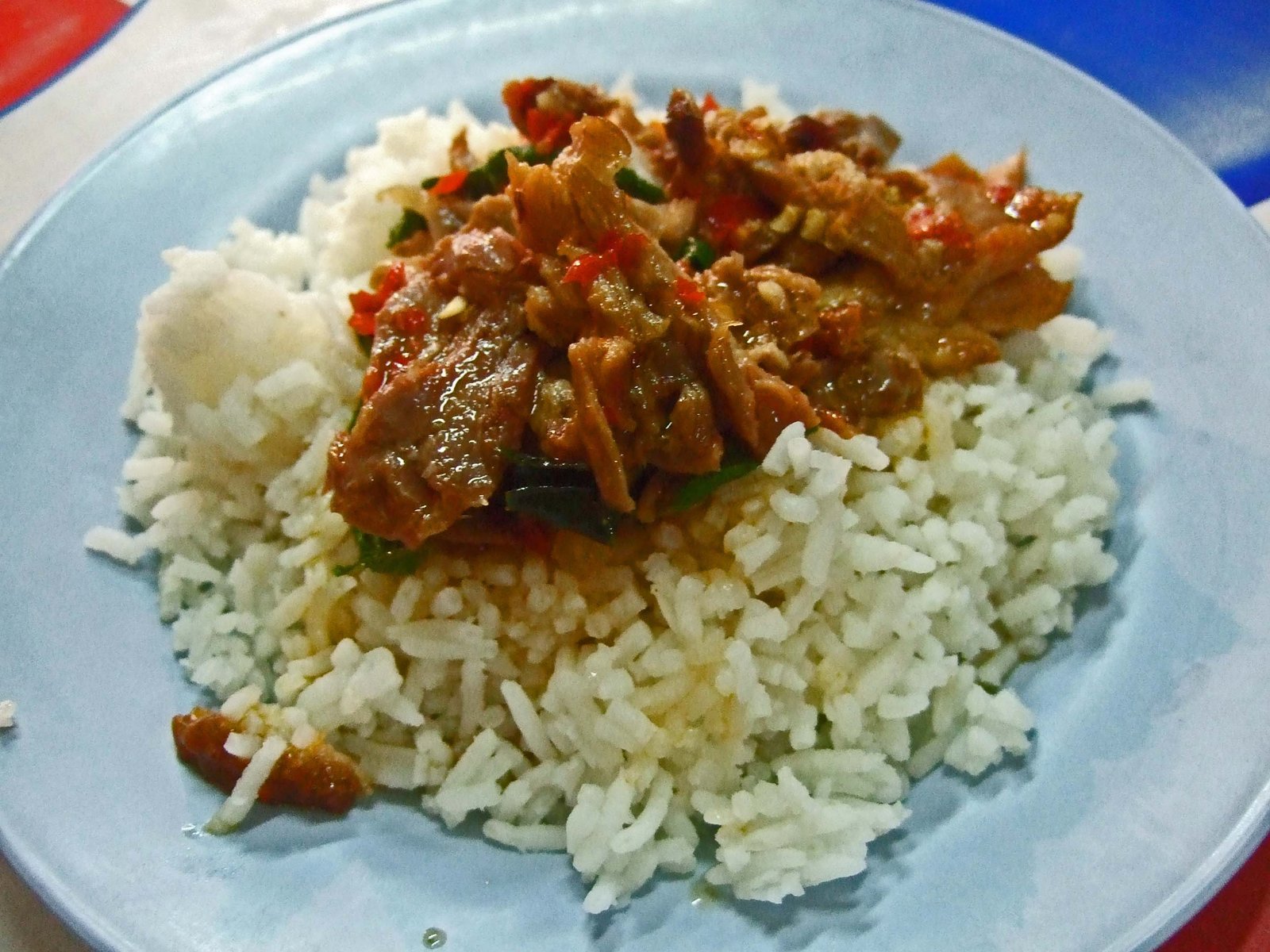 I ordered the Roast Duck Red Curry (35 Baht – about $1):