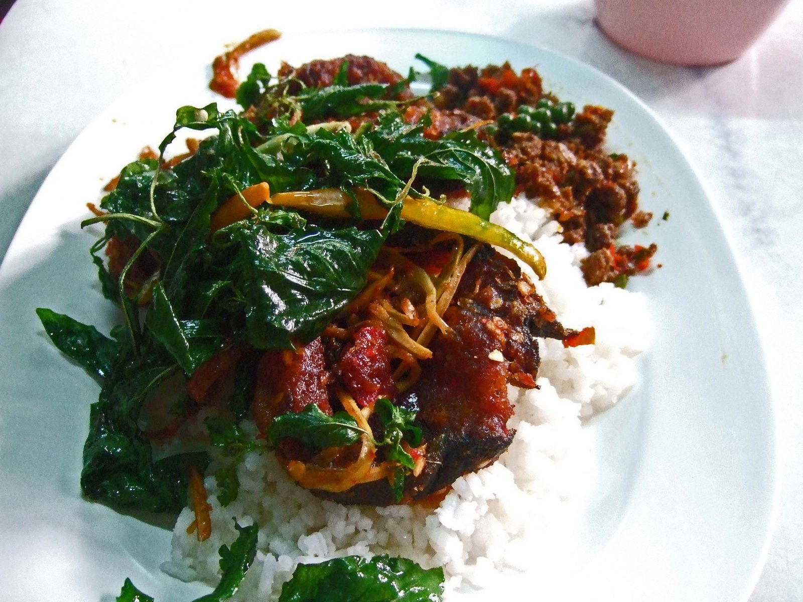 It was a very tasty plate of deep fried fish with basil (40 baht):