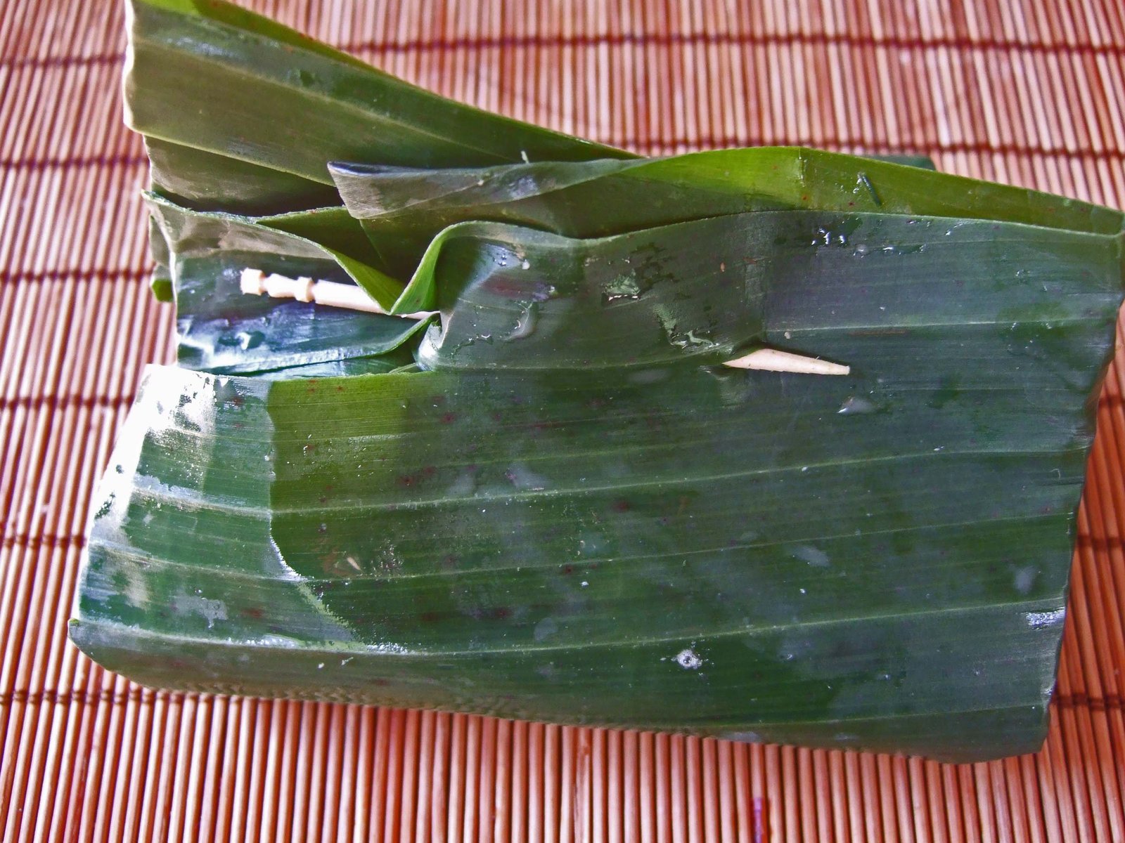 Some other notes; the original recipe uses ground sticky rice powder, I've replaced it with corn starch. I've adjusted some of the other ingredients to my taste. One of the tricks to making banana leaves pliable is to run them over a flame, until they become "shiny". Don't burn, however……