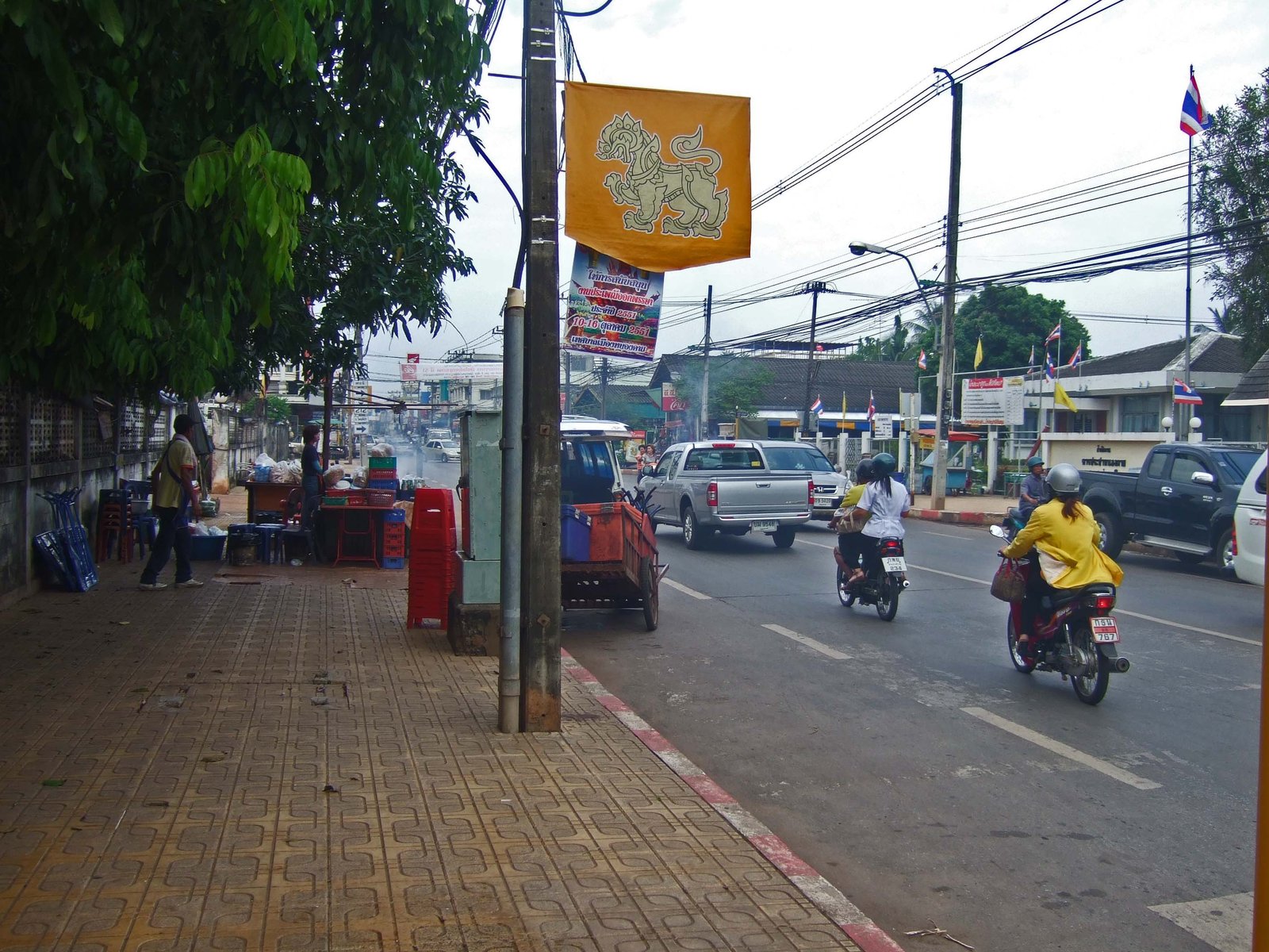This is by far the busiest street in Nong Khai, and the speed of the motorbikes and cars made crossing interesting….especially since driving is done on the left side of street in Thailand. One has got to break that rule we learned in the first grade, "when crossing the street, always look left, than right." It's amazing how ingrained those rules become.