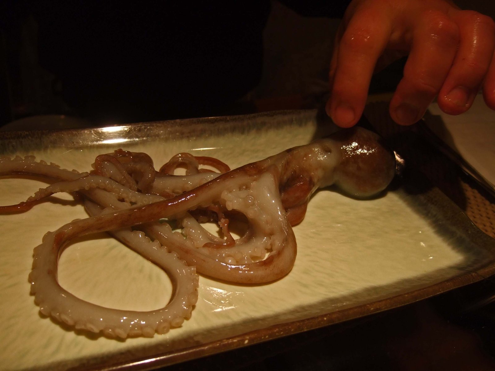 And so here I was, beyond all the bad puns, peering at writhing segments of suction cups on a plate. The sesame seeds just made things look much more peculiar; pulsating, shiny, smelling of sesame oil…….