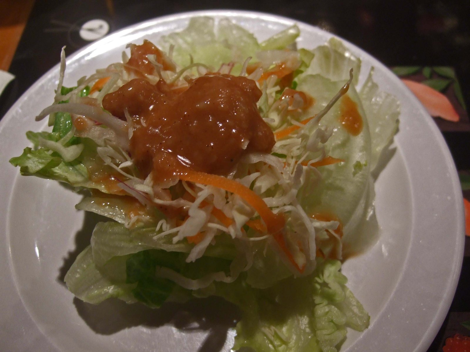 A few minutes later, a green salad, some edamame, and miso soup arrived. Sam clapped his hands together and said; "ok Kirk-san, are you ready?" At which point Sam walked out the side of the sushi bar, and back around the kitchen area, only to appear behind tank.