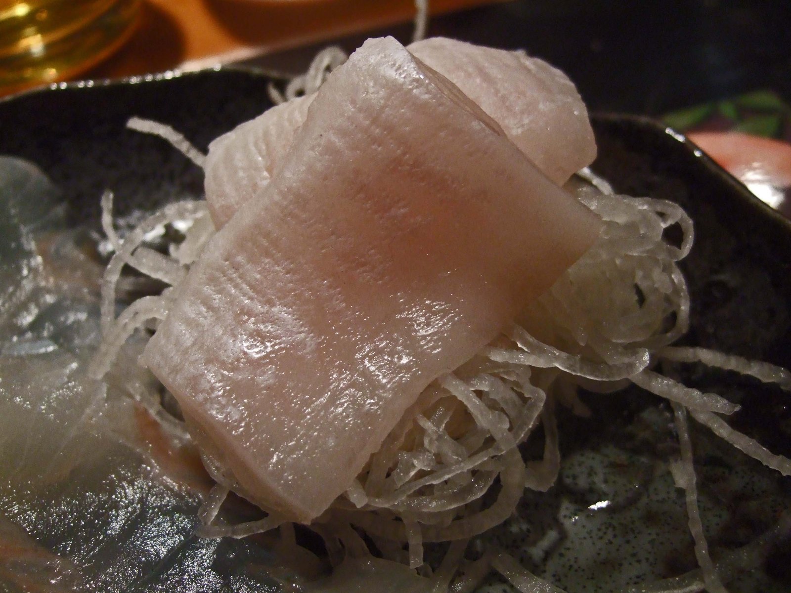 If you enjoy what the Japanese call "Shiromi" (whitefish), you will love this! The hallmark of Shiromi is a nice chewiness, and when really fresh like this, there is a pleasant, mild sweetness as well. This was very good, especially the two pieces of "Engawa", the dorsal fin muscle of the Halibut, and one of my favorite cuts of fish, and a real delicacy. High in fat, and the all important collagen (yes, yet again, more collagen for yoso – it's not only in hot dog buns you know). I'll take halibut this fresh, over live raw lobster sashimi any day of the week.