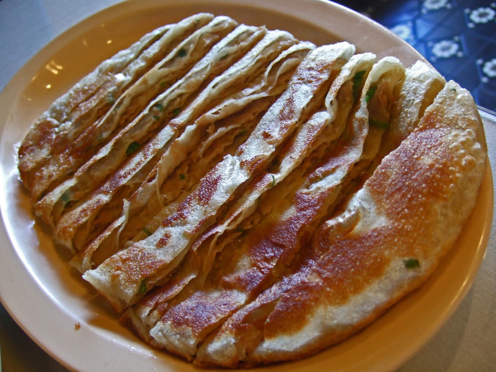 We started off with the "Thousand Layer Meat Flat Bread" – aka "Pork Pancake" on the menu ($5).