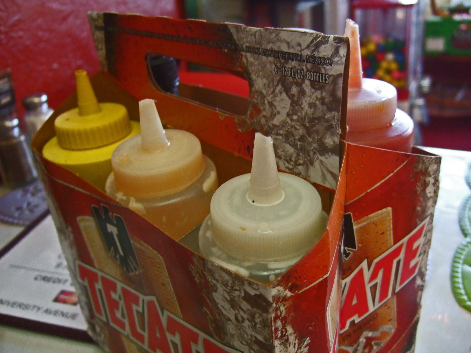 And a Tecate six pack holder also arrived at the same time with the various dressings….mustard, mayo, salsa, etc… nice job of "recycling".