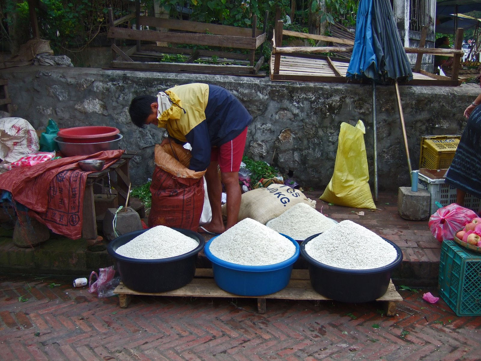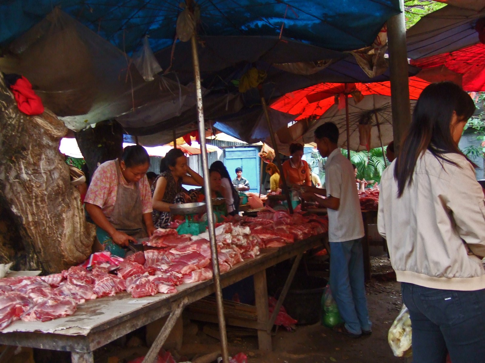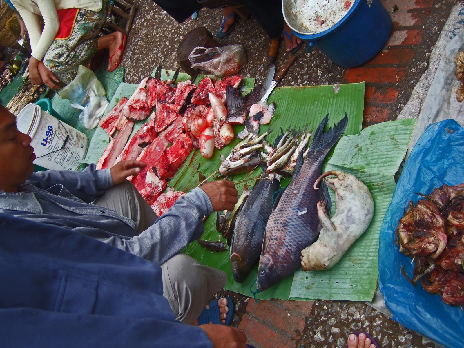 And so we strolled along. Just your typical SEA market, ho-de-do (Lunag Prabang has a way of putting you into a calm, relaxed state)….until we turned the corner.