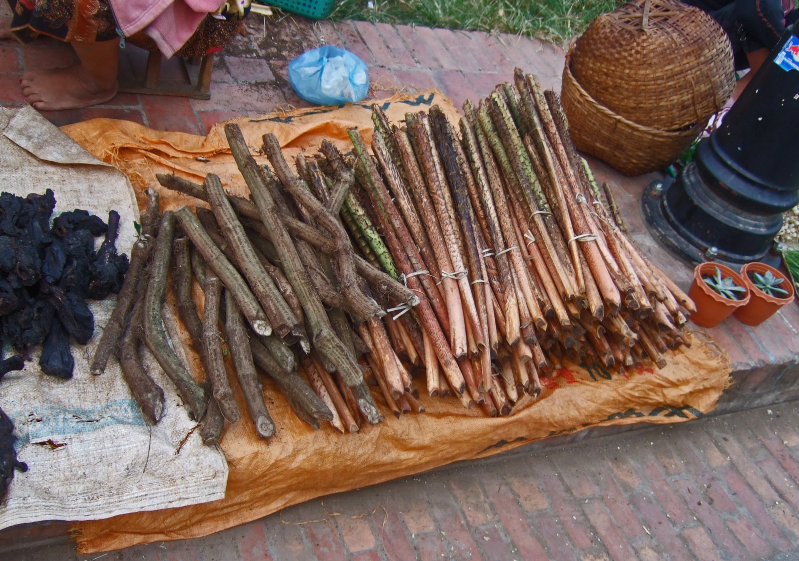 On the lower left are "Lao Olives", on the right, Sa-Khan, the branches used to flavor Or Lam: