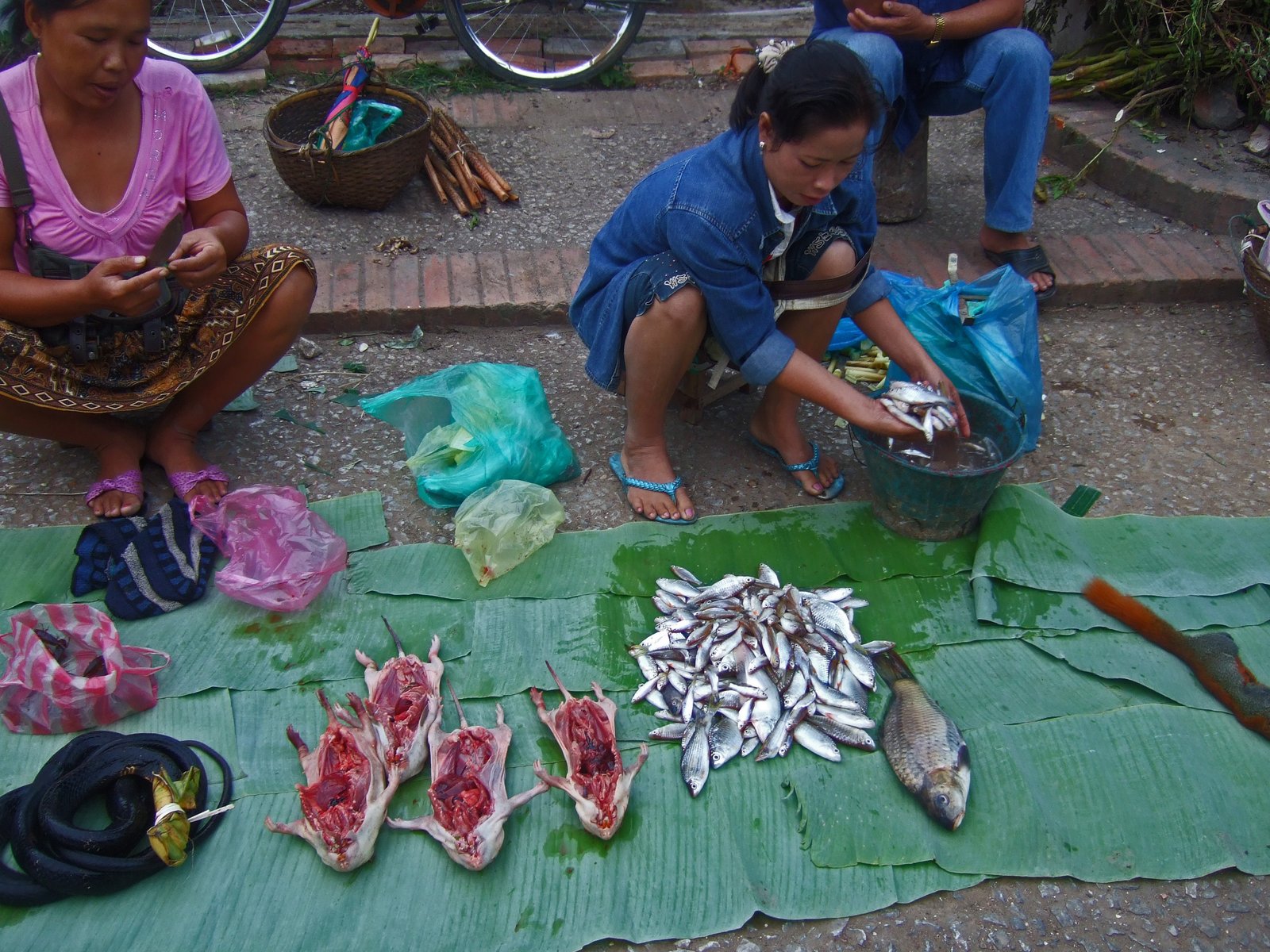 And those little bodies in the center were the same as the little dude in the blue bucket. I was told they called these "forest rats". And no, we never saw any Laotian Rock Rats. But this was a veritable edible zoo.