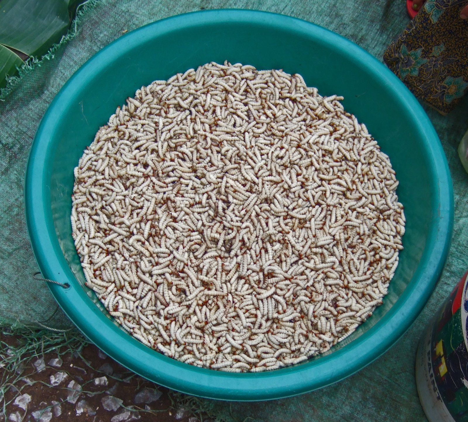 And were those silkworms? And what the heck is in that blue bucket? Is that someone's pet, or "what's for dinner?"