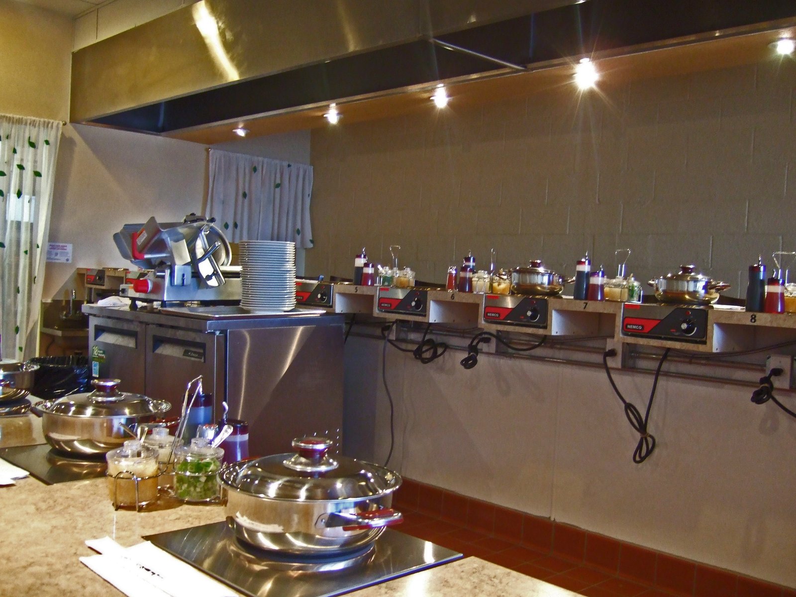 One quick look at the surroundings and I was pretty sure this was going to be straight up kombu in water Shabu Shabu. In essense it's simple boiled beef, with in this case, a scant piece of Kombu being boiled in good old H2O. So for me, in situations like this, it can come down to the little things that matter. On the good, the service was very nice, if a bit too cloying and hovering, which can be attributed to being new and being eager to please. On the bad, no hot tea, only water and sodas….. for me hot tea goes well with Shabu Shabu. Also the heating device is waaay on the other end of the counter, and if you're "vertically challenged", like ahem…me, you might end up dripping stuff everywhere as the meat makes it's way to your bowl of rice. Part of this was my fault, perhaps I should have taken a seat on the higher counter, where the chairs would have put me in a better position for eating.
