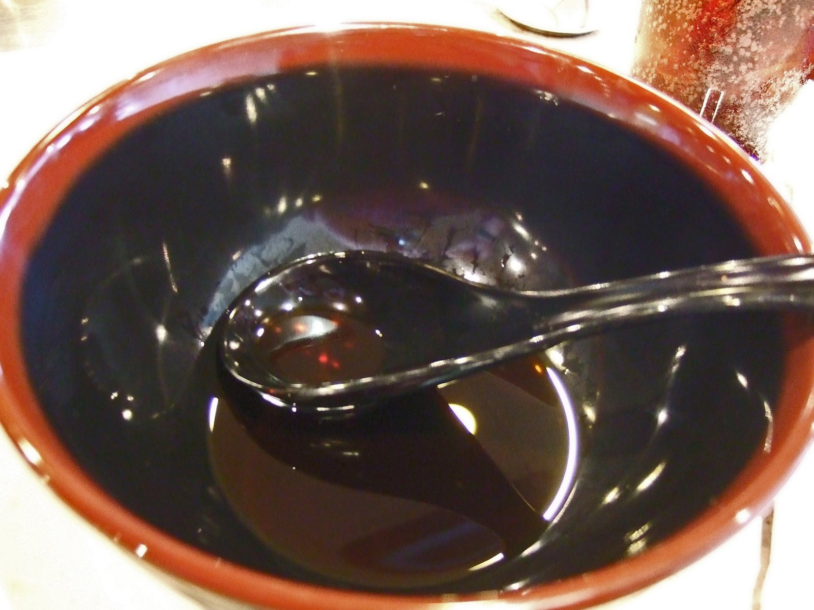 After I finished my meat, the young lady working came over, and skimmed my broth! A nice touch! I was provided with a bowl with some dark looking liquid in the bottom.