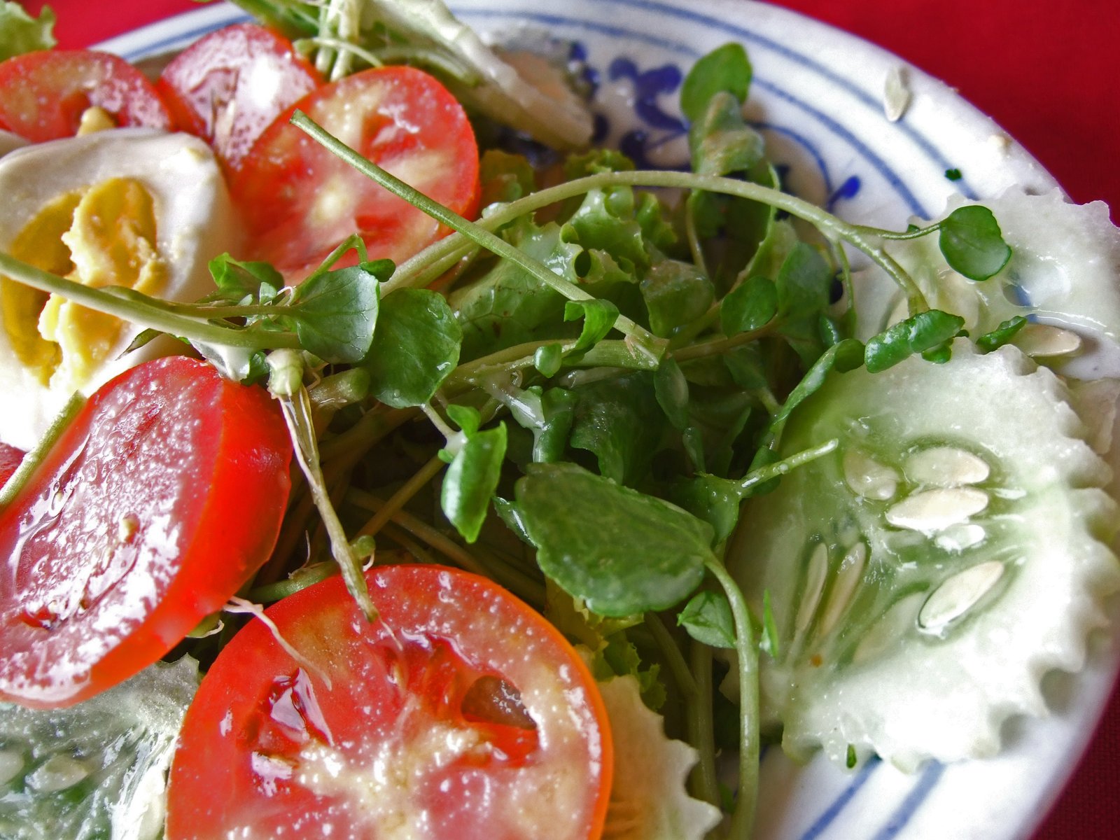 BTW, I saw baby watercress at Trader Joe’s that looked similar to what you have on the salad. I don’t know if it tastes the same, but maybe it’ll satisfy when the Missus has another craving. 🙂