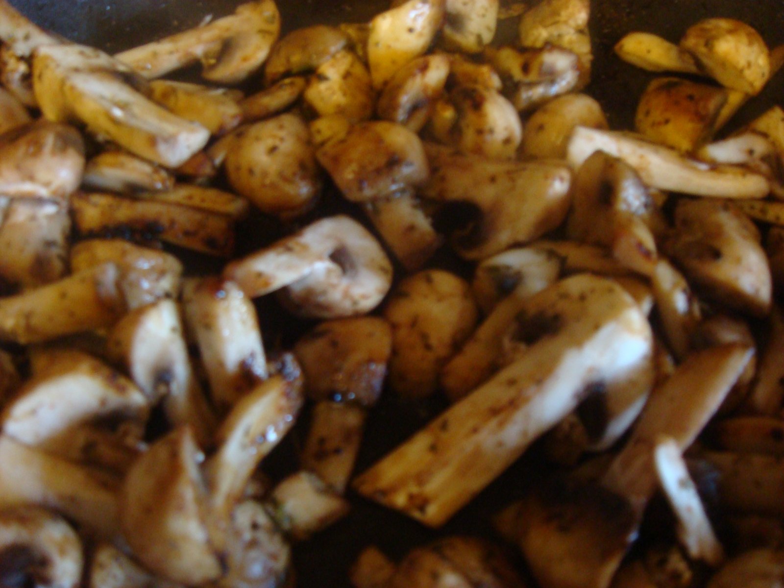 While the mushrooms are cooking, season with tarragon and nutmeg.