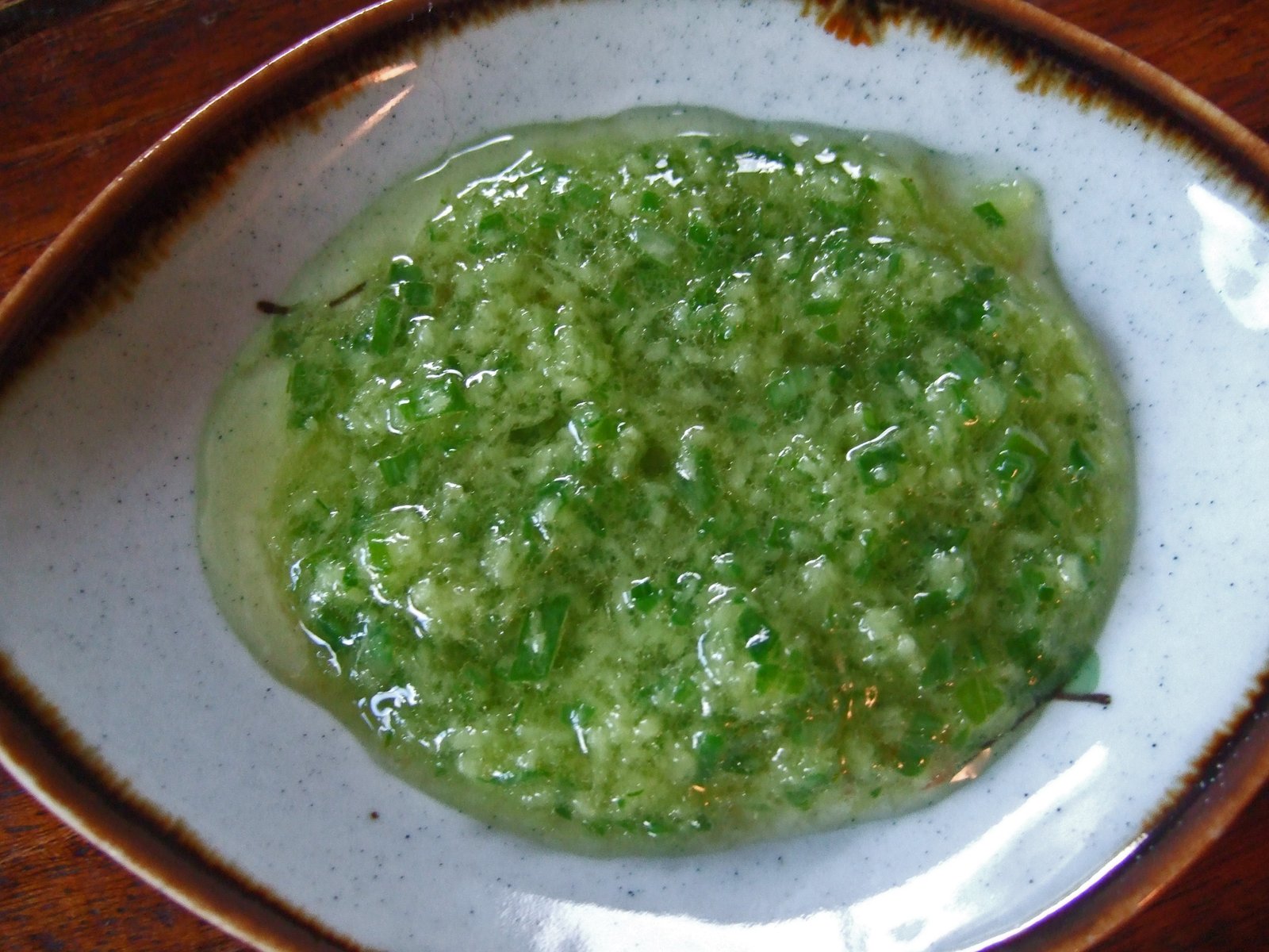 You can take this in many directions….soy sauce eggs anyone? I found this to be close to the salty edge, so I made up a Ginger-Scallion Oil, just like what I make for my cold ginger chicken, which cut the salt and fat real well: