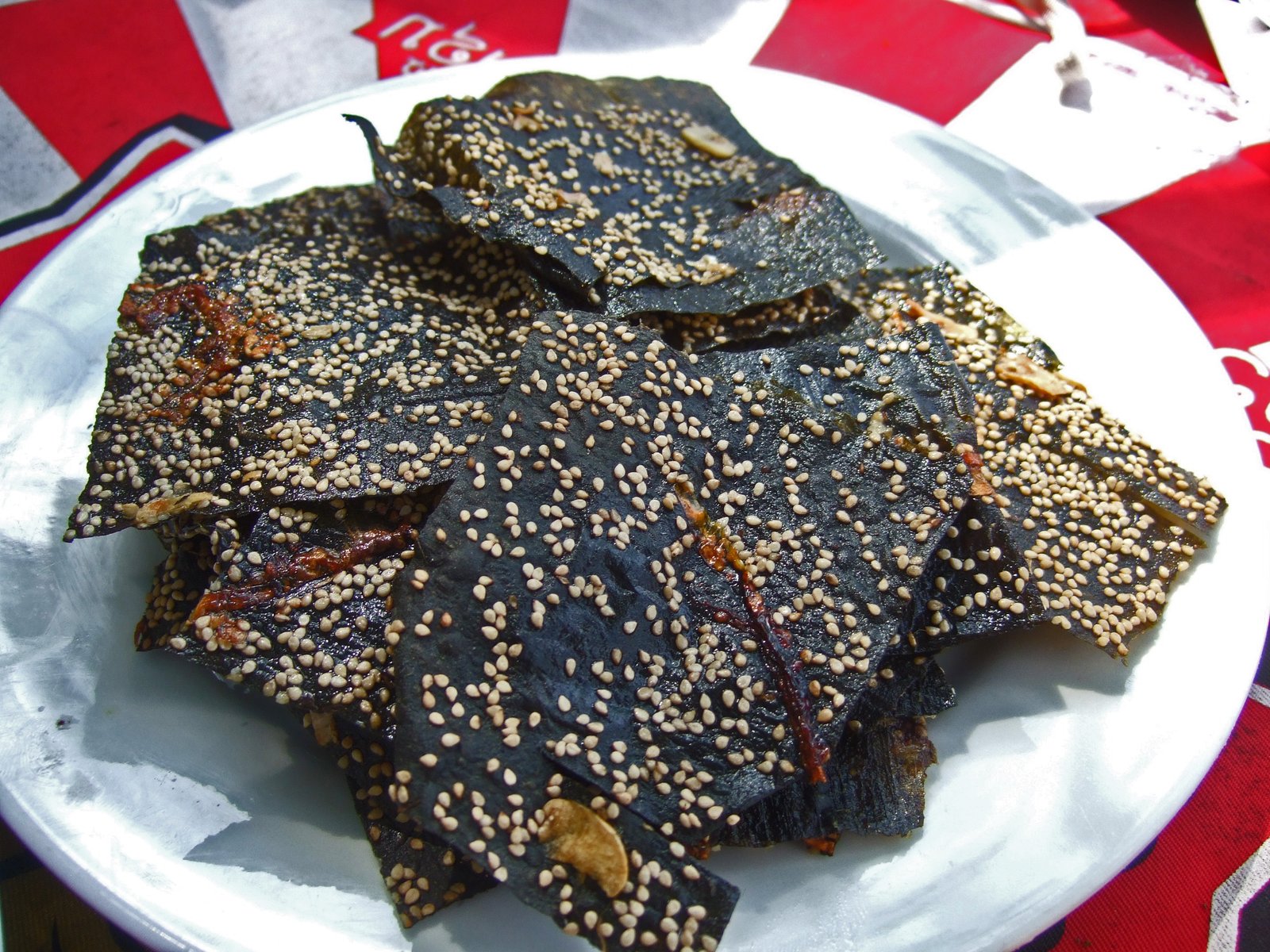 Nice garlic flavor, with a mild spiciness. The water buffalo skin pieces were a bit big, but not too tough.
