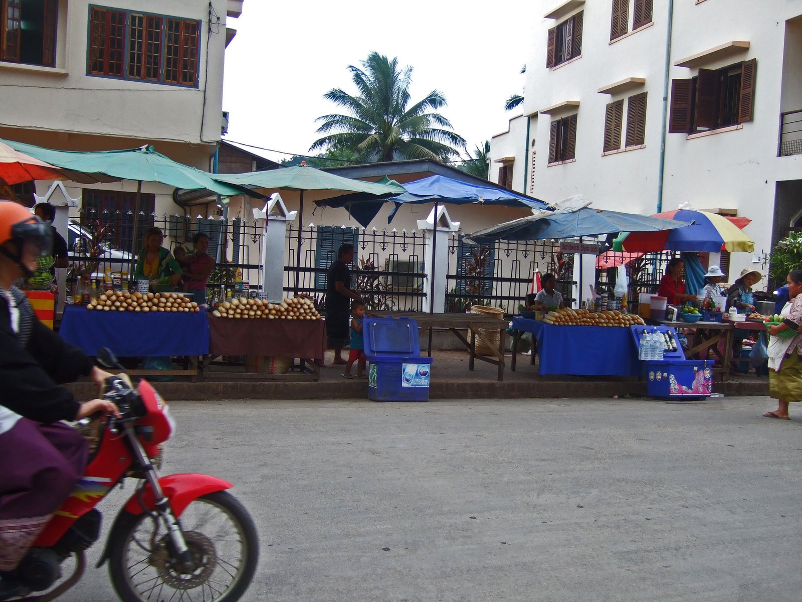 Around 4pm there is Luang Prabang's version of evening "traffic". Sisavangvong, from the National Museum until the intersection of Kitsalat becomes a bustling beehive of activity.