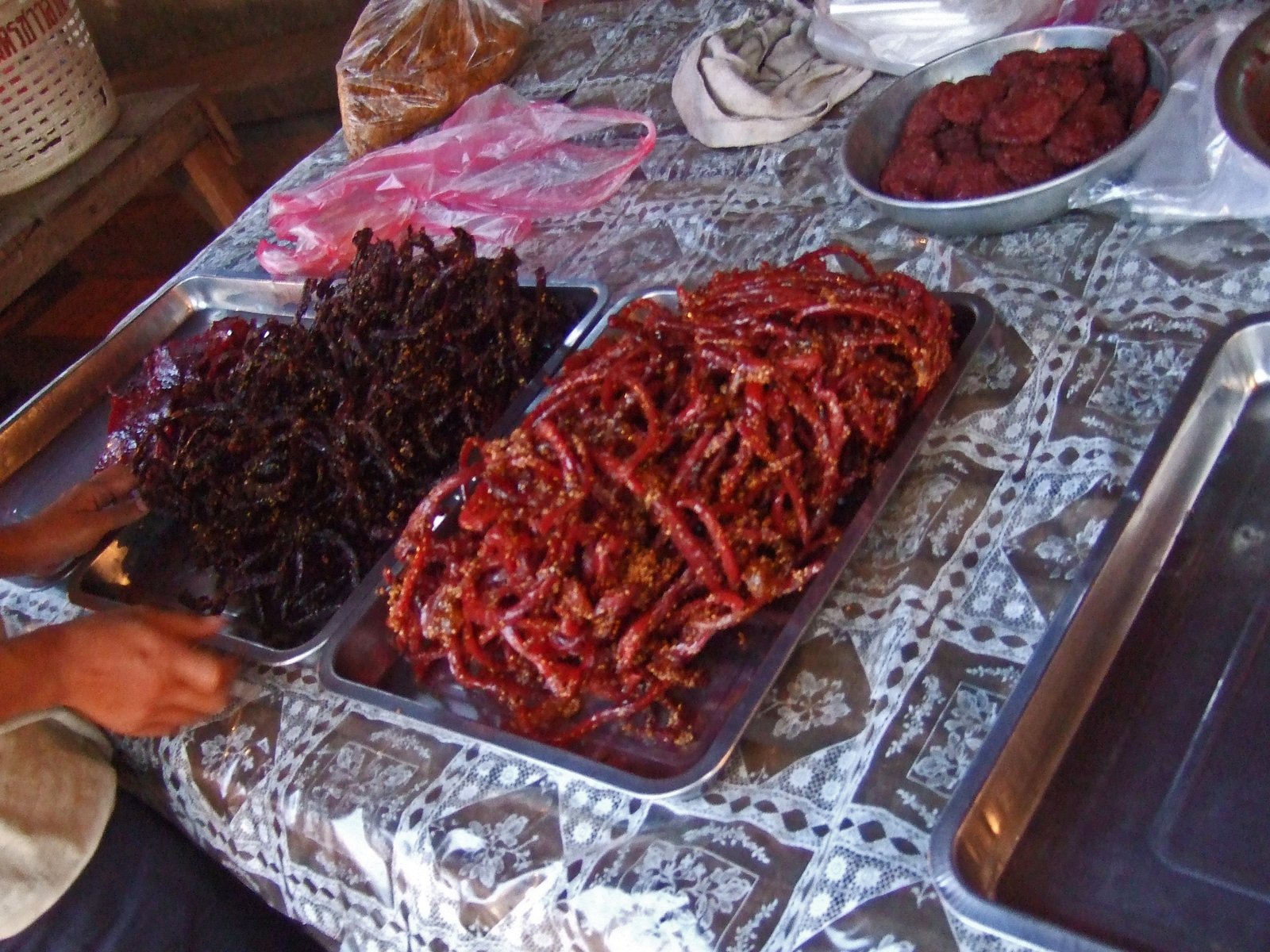 The Missus felt proud and quite smug….She had been "Queen of the Deal…Baroness of the Bargain." Of course we turned the corner and found out that a bunch of this stuff went for 2,000 Kip! We also noticed that the woman had already eaten half the bunch!