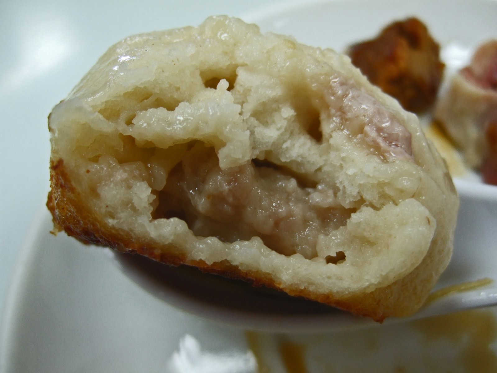 WokNoodle11The Missus said these rather rustic looking SJB, most closely resembled what She recalls eating in High School. Though the bottoms of these Bao were nice and crisp, the bun was more gummy than fluffy. The filling was a simple pork meatball that was on the bland side.