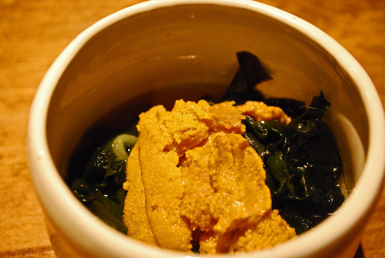 Several pieces of freshly cracked uni on a bed of wakame in a dashi based broth. The subtle, balanced flavors were excellent. The uni was sweet, rich, and custard-like. The wakame added texture, and the wonderful umami. The broth was savory, yet refreshing. If you could think of the taste of the ocean……