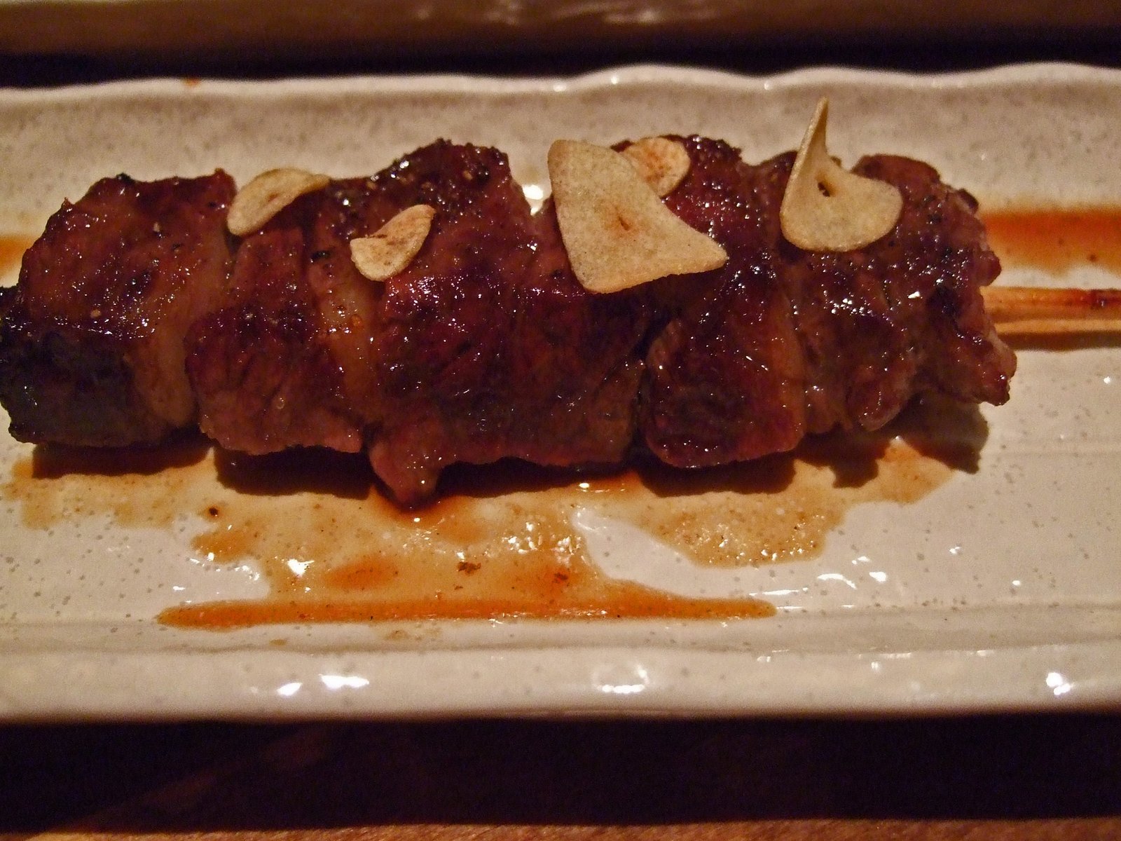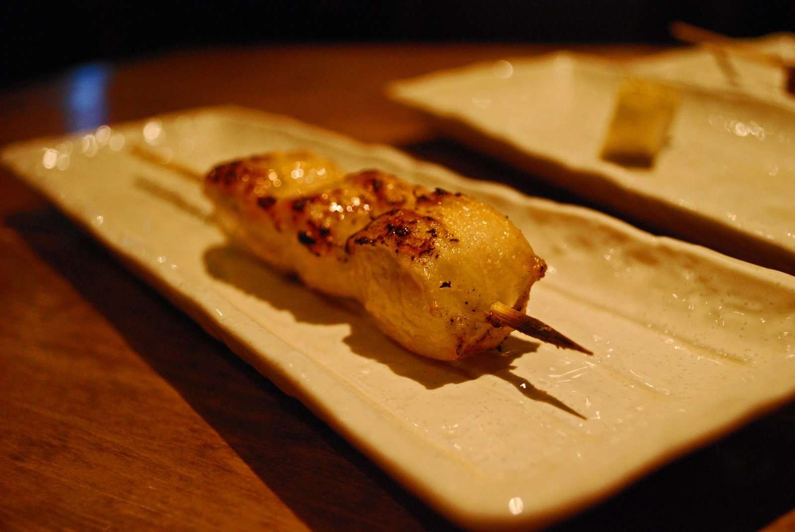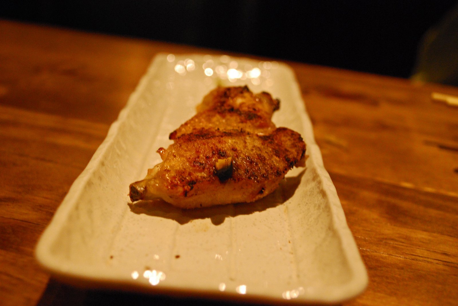 There's a simple equation which makes amazing things happen. The presence of a chicken wing seasoned with good quality salt, grilled over Binchōtan, is simply wonderful. And this did not disappoint. It was moist, the wonderful flavor of the salt and chicken, with the smokey flavor of bincho-charcoal came through. The wing was cooked to perfection, bursting with flavor and juices. The skin was a work of art. I wanted to order 15 more.