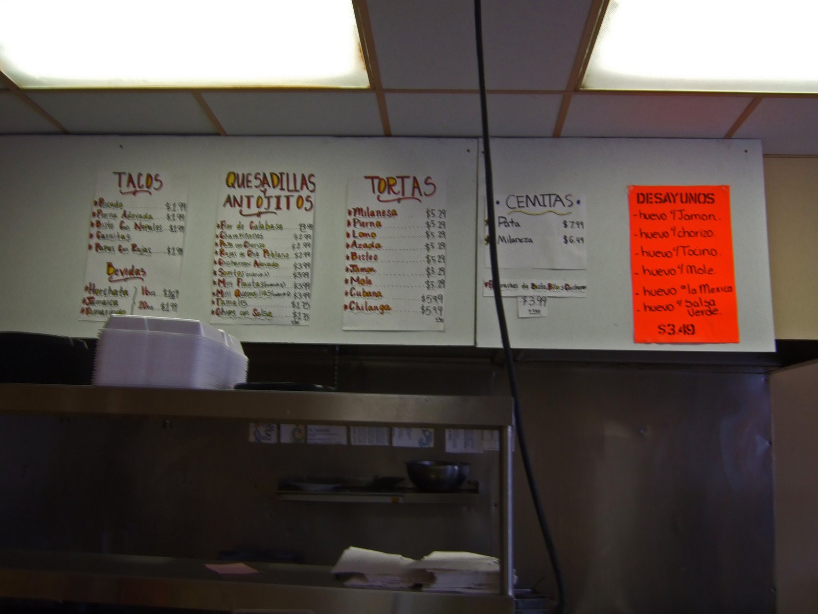 The menu is simple, but growing everyday. On my first visit it had Tortas, Quesadillas, breakfast items, and Cemitas. They have now added tacos and huaraches, and I watch with glee as the ball of masa is formed and a tortilla is pressed out for its destiny as a huarache (huarache = "slipper", and is a slipper sized "tortilla" of sorts, topped with any number of items). The restaurant is pretty clean, and simply attired.