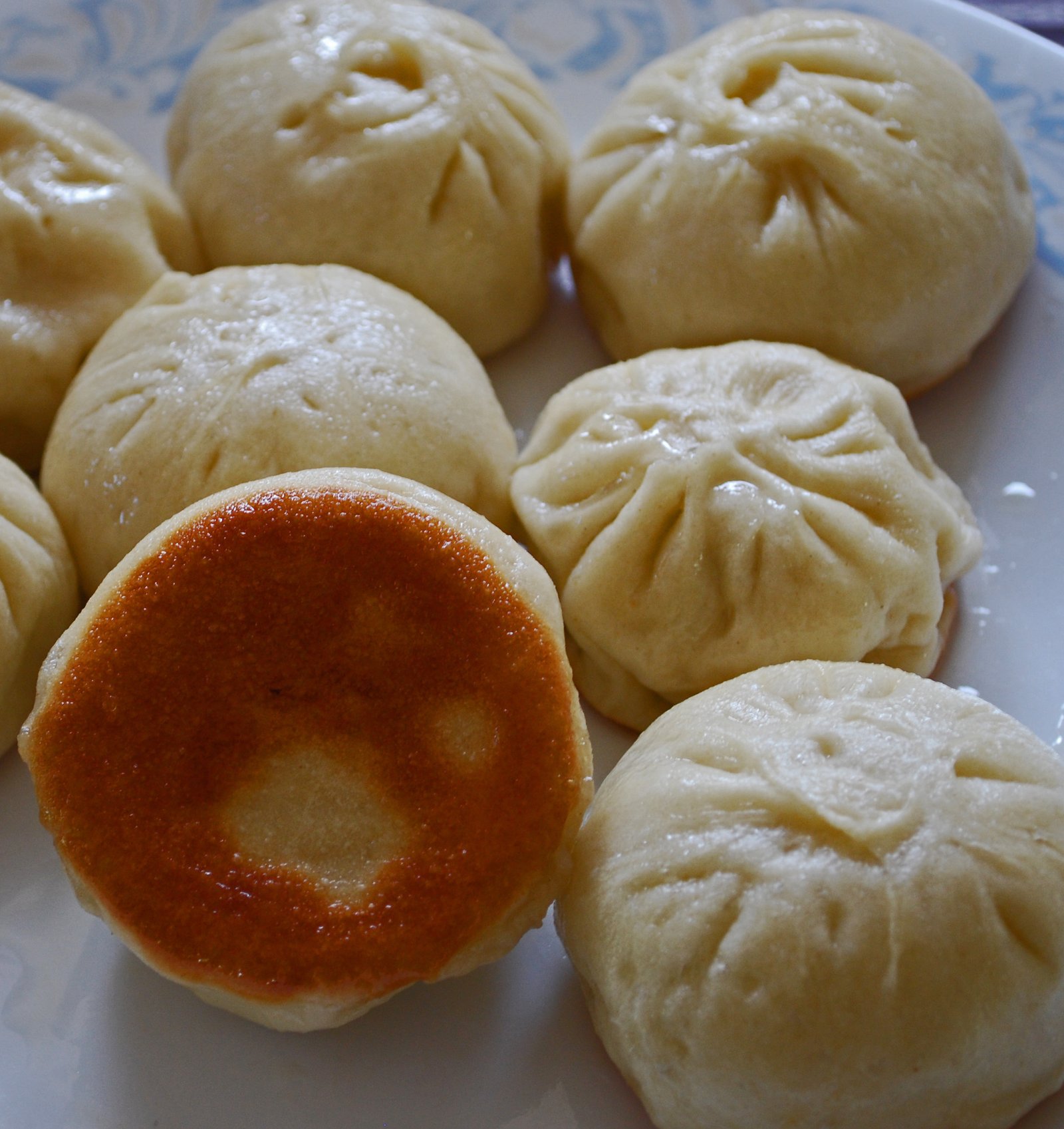 Fry until the bottoms of the Bao attain a light golden brown color.