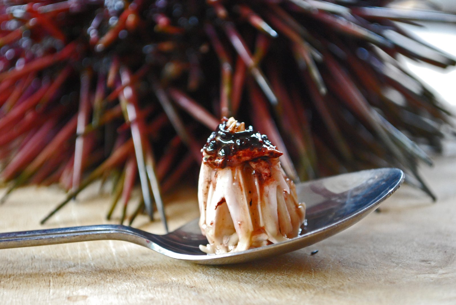 The booth is manned by Heidi and her daughter Rosemary. Heidi is treasure trove of information on Sea Urchin. Stuff like sea urchins can live a very long life(100 + years), and can keep reproducing until they are very old. As such, harvesting these keeps the population in check, which in turn does our Kelp Beds a favor. And then the magic words were spoken, "would you like a taste?" Are you kidding me????