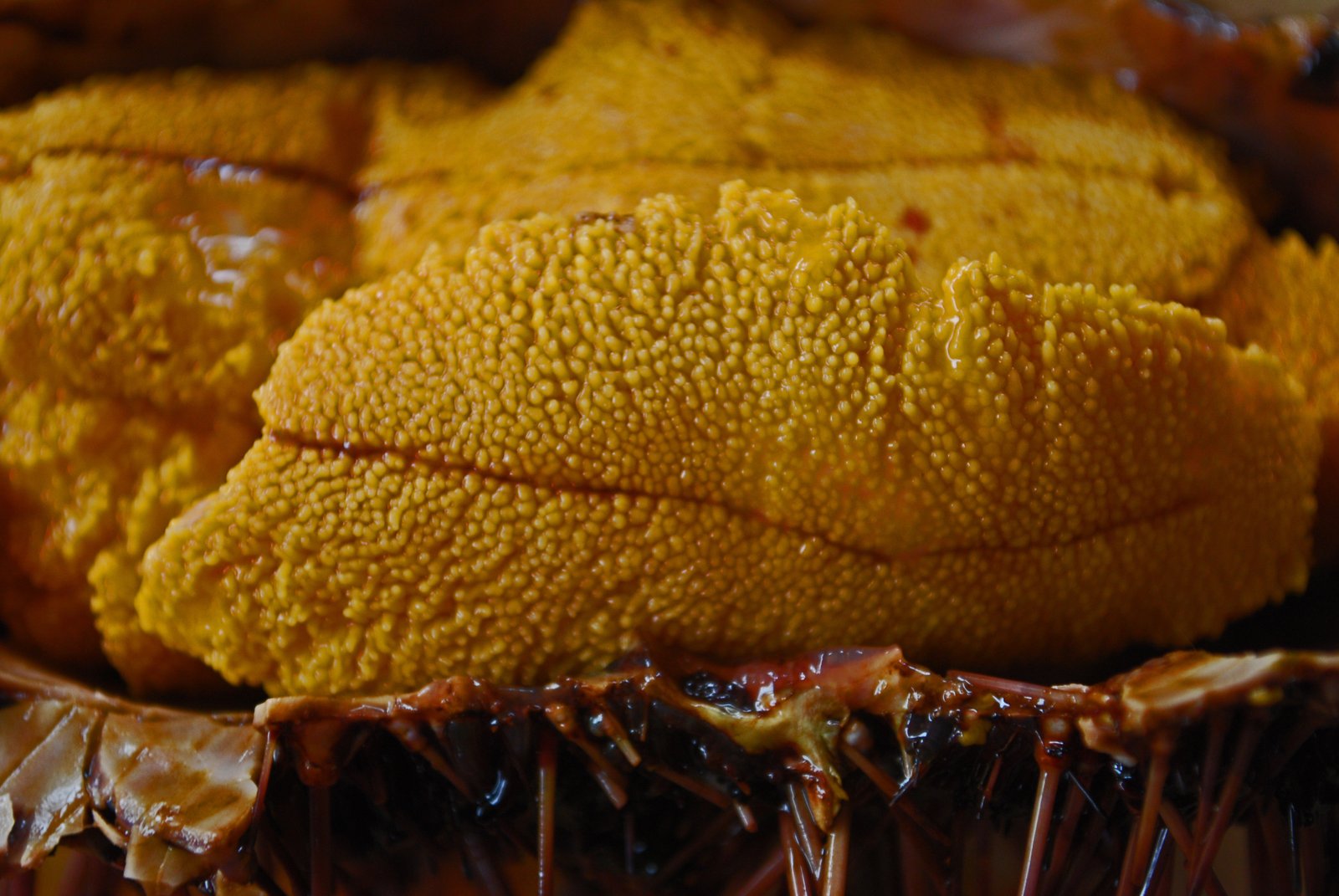 These 'nads had a bright almost reddish-orange color, with a nice, mild sweetness, and rich, briney flavor…..call it the kiss of the ocean if you desire. The flesh was creamy without disintegrating, and the fragrance hinted of the sea. And at four bucks a pop, I bought two…….