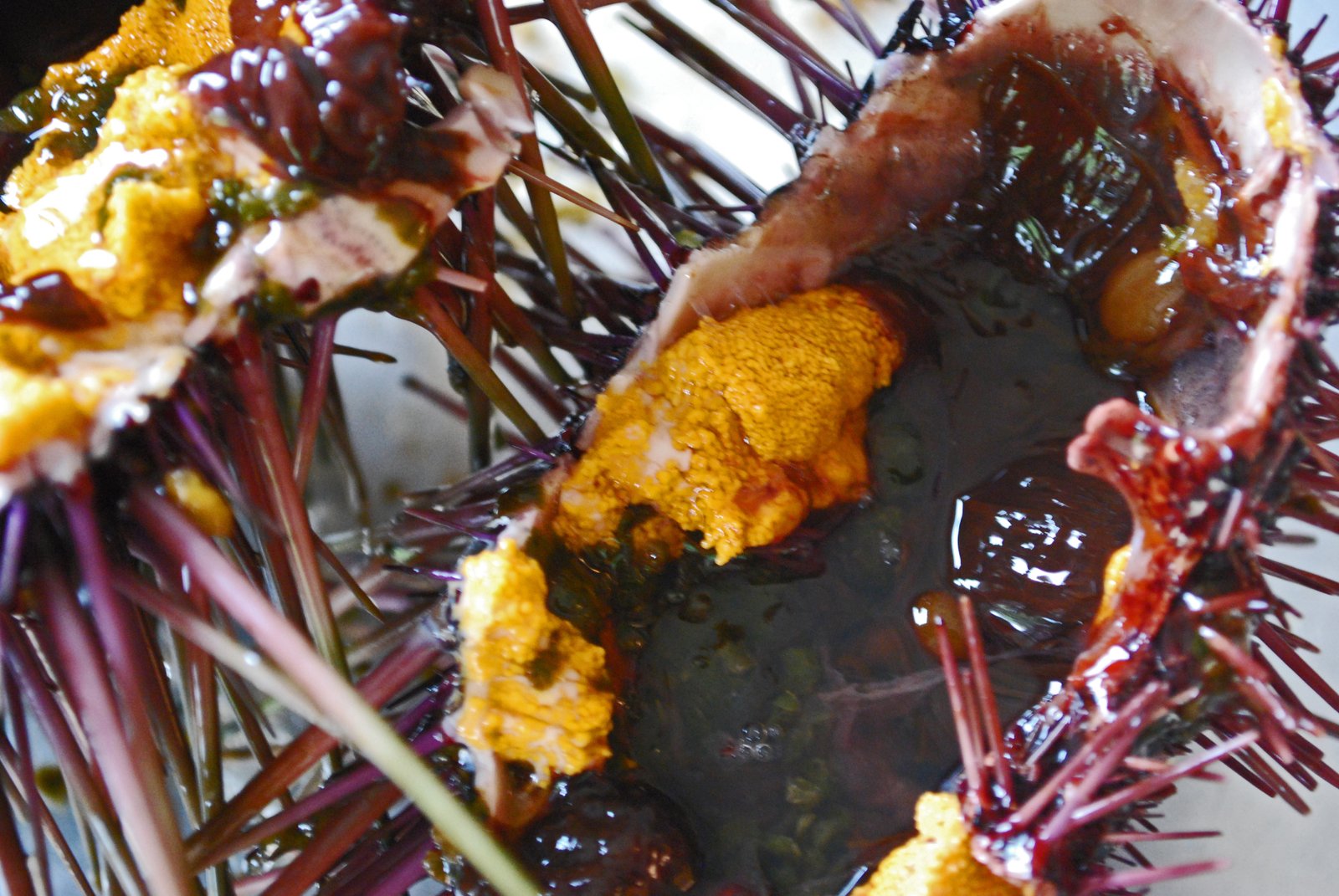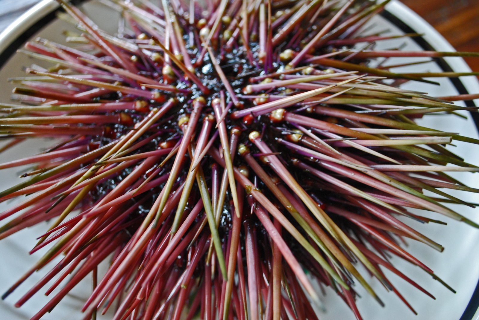 When I arrived home, I placed my uni in some old pasta bowls I had and put them in the fridge. I had been told that the uni would live two to three days in my fridge. You can tell they're alive by touching them……the spines will move. Of course, every half hour or so, I'd open the fridge, and pet my uni……