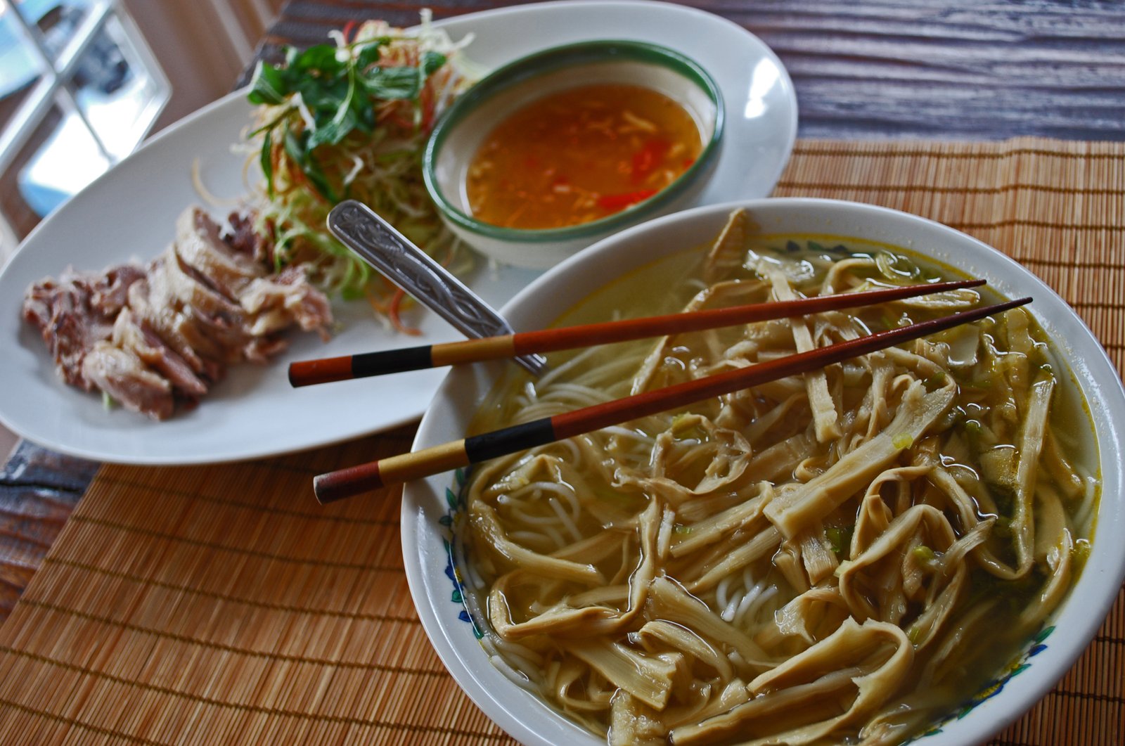 And even beyond that, there's only one item I order here…the Bun Mang Vit (Duck and Bamboo Shoot Soup), and I'm rather surprised it's still five bucks. I've found that I prefer to take my Bun Mang Vit to go…..for a reason I'll explain later.