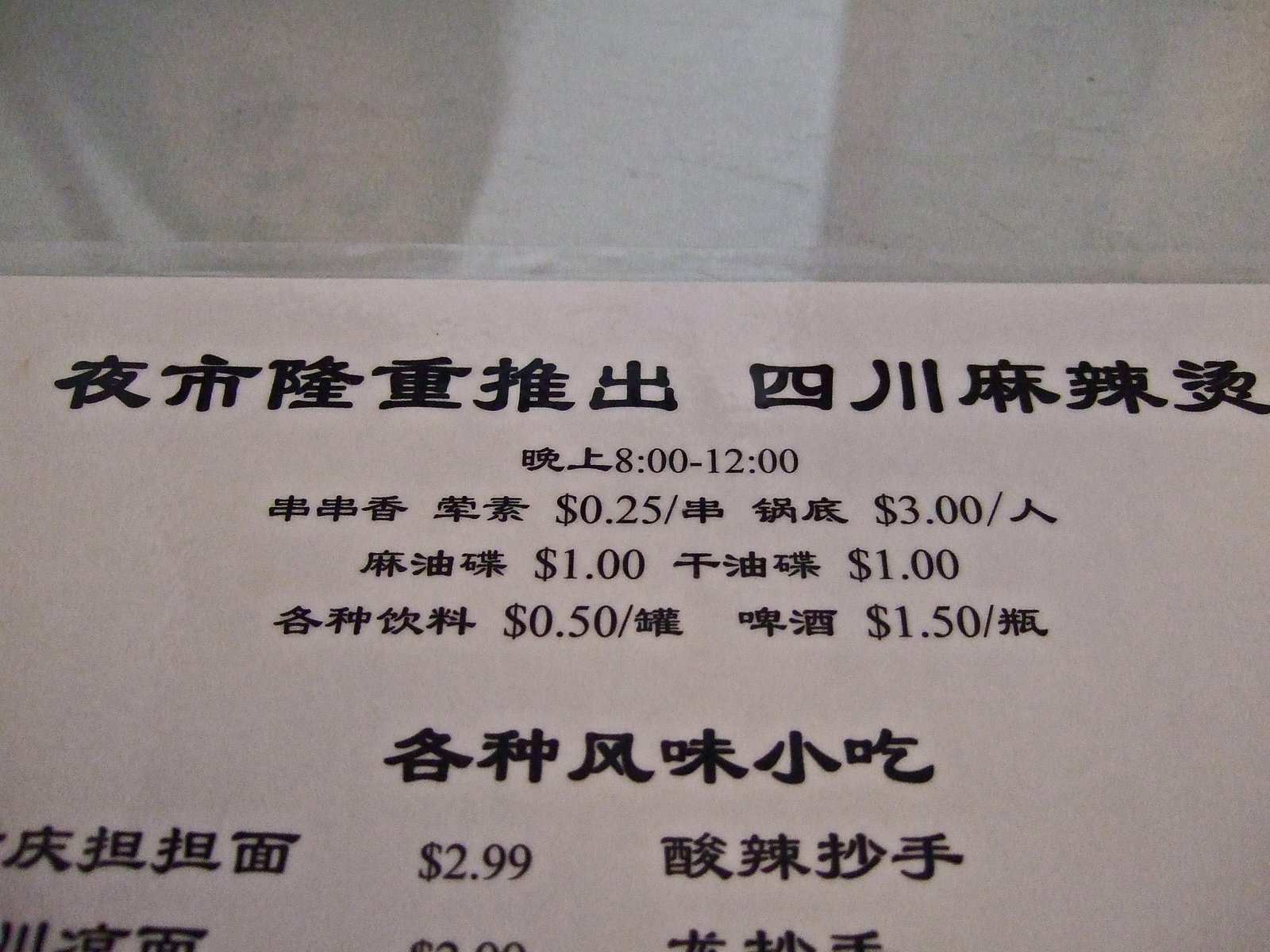 Some details: The menu says served only between 8pm and midnight, but we had this at 6pm, so you may want to ask. To take advantage of the special noodle and snack prices, you're entire table will need to go the "Yie-Shi" route, though you can still order off the regular menu to supplement.