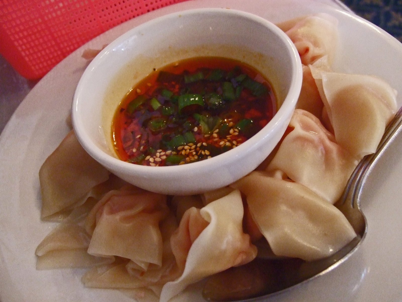 The sesame oil-garlic dipping sauce….really"smooths out" the heat.
