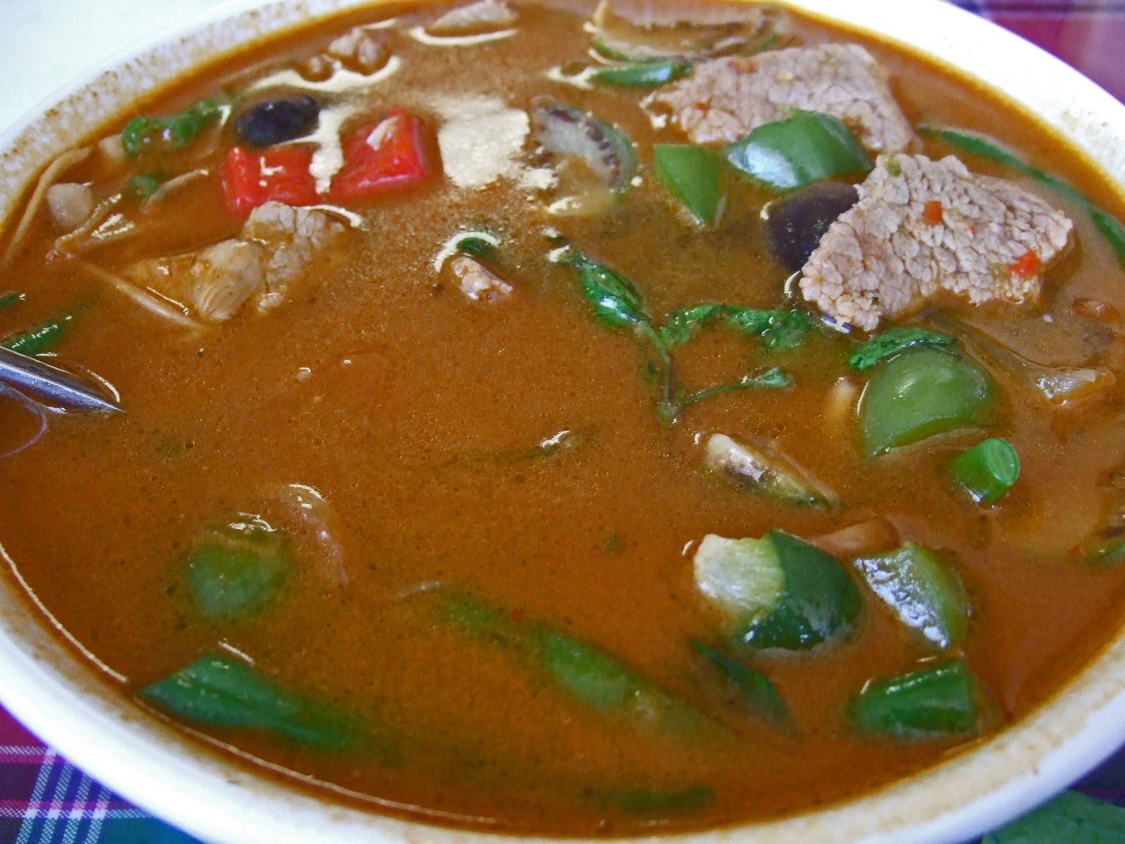 As I was taught in Laos, no meal is complete without a soup, which is not to be treated as a soup in Western terms, that is, as a "starter", but to be eaten along with the meal. I really didn't feel like having the recommended Tom Kroung Nai, Intestine Soup, so I went with the other recommendation, the "Jungle Curry':