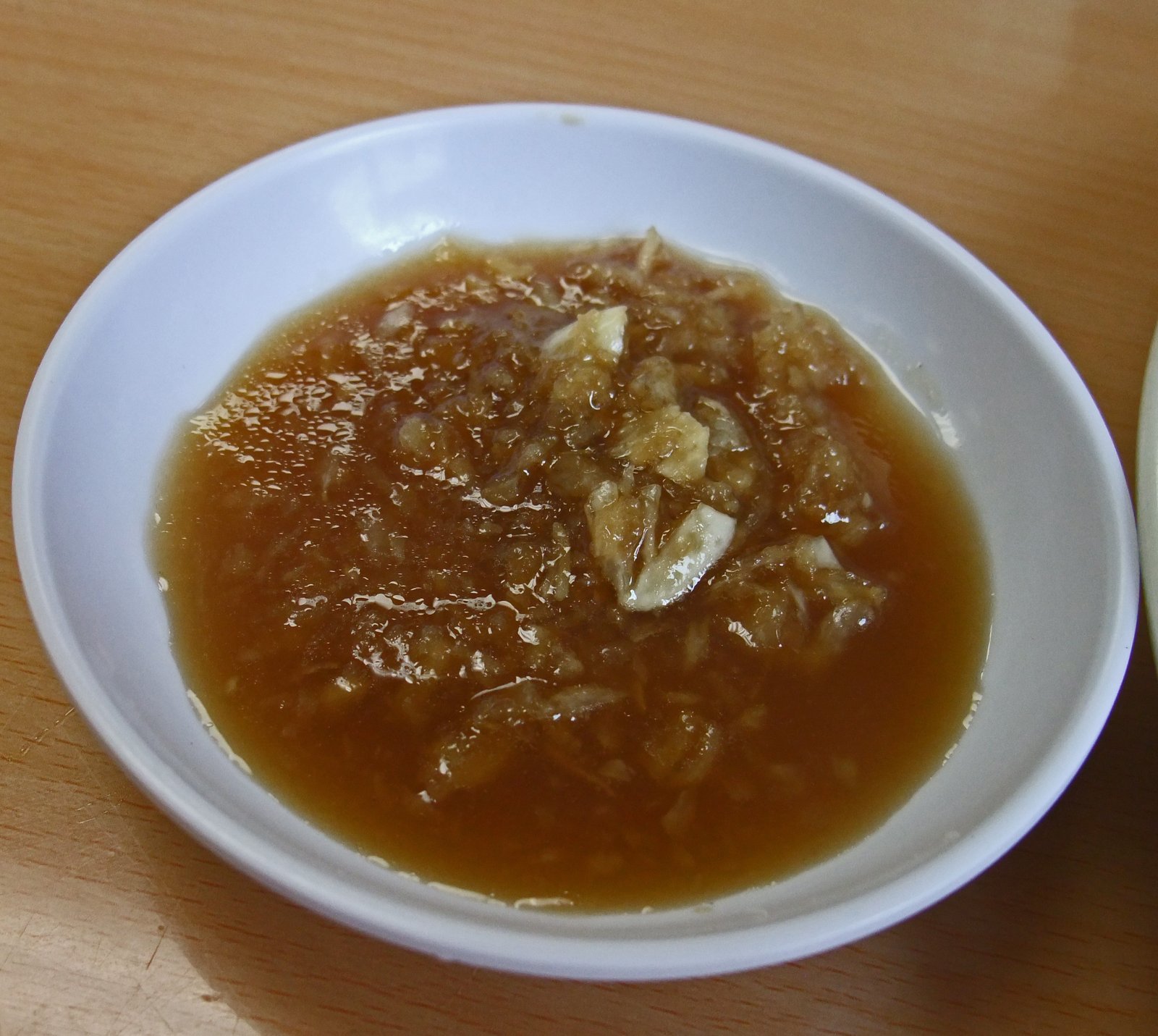 Growing up, this was the standard condiment for Baozi and Jiaozi in Qing Dao; garlic that had been pounded in a mortar mixed with vinegar. In fact, when She was a child, it was the Missus's job to peel the garlic. Which of course She hated! This was mighty strong stuff, that tastes great if you're garlic lover like myself……but the aftertaste will hang around for a good long time…….