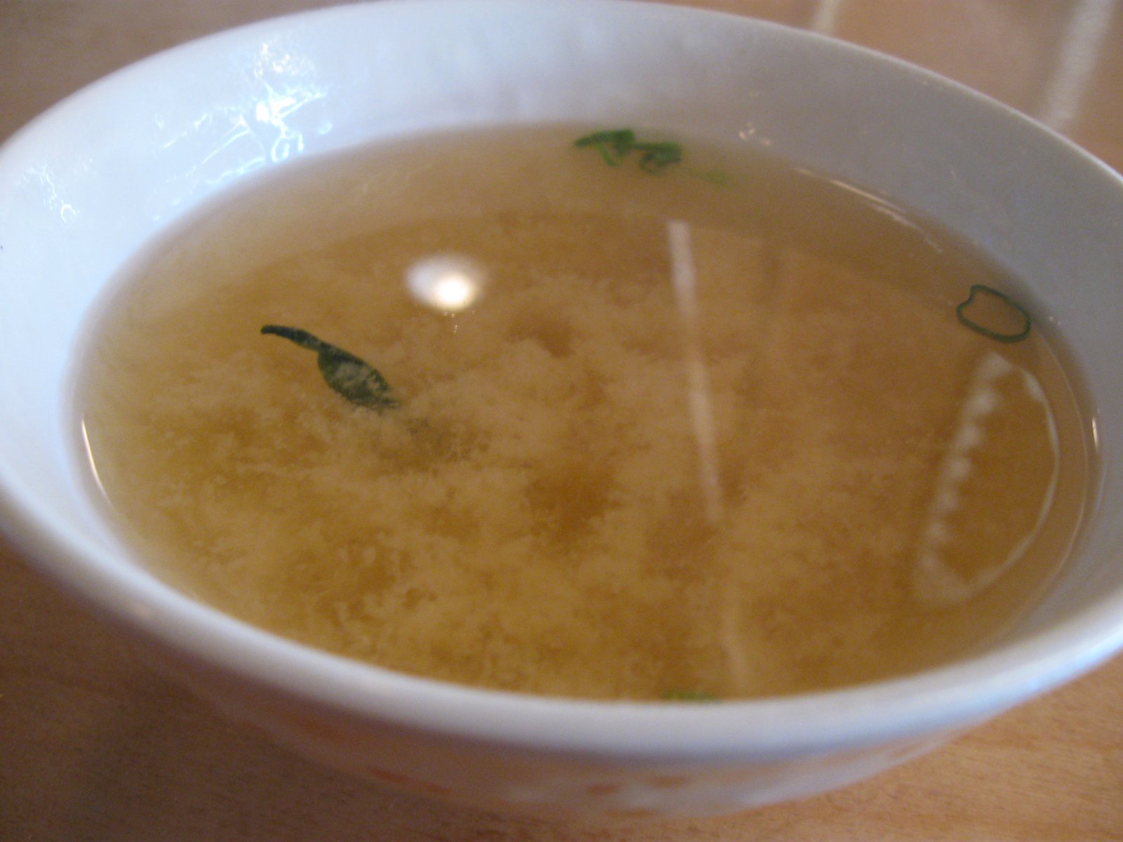 When I showed up both times at lunch, I tried to come with an open mind. I was pleased that icewater arrives with a lemon slice that I didn't even need to request: The miso soup is consistently thin, light but balanced in flavor, and lacking almost any content except for a couple shards of seaweed, a few thin circles of green onion, and on one visit, a cube of tofu the size of a garden pea. Nonetheless, it was certainly satisfactory: