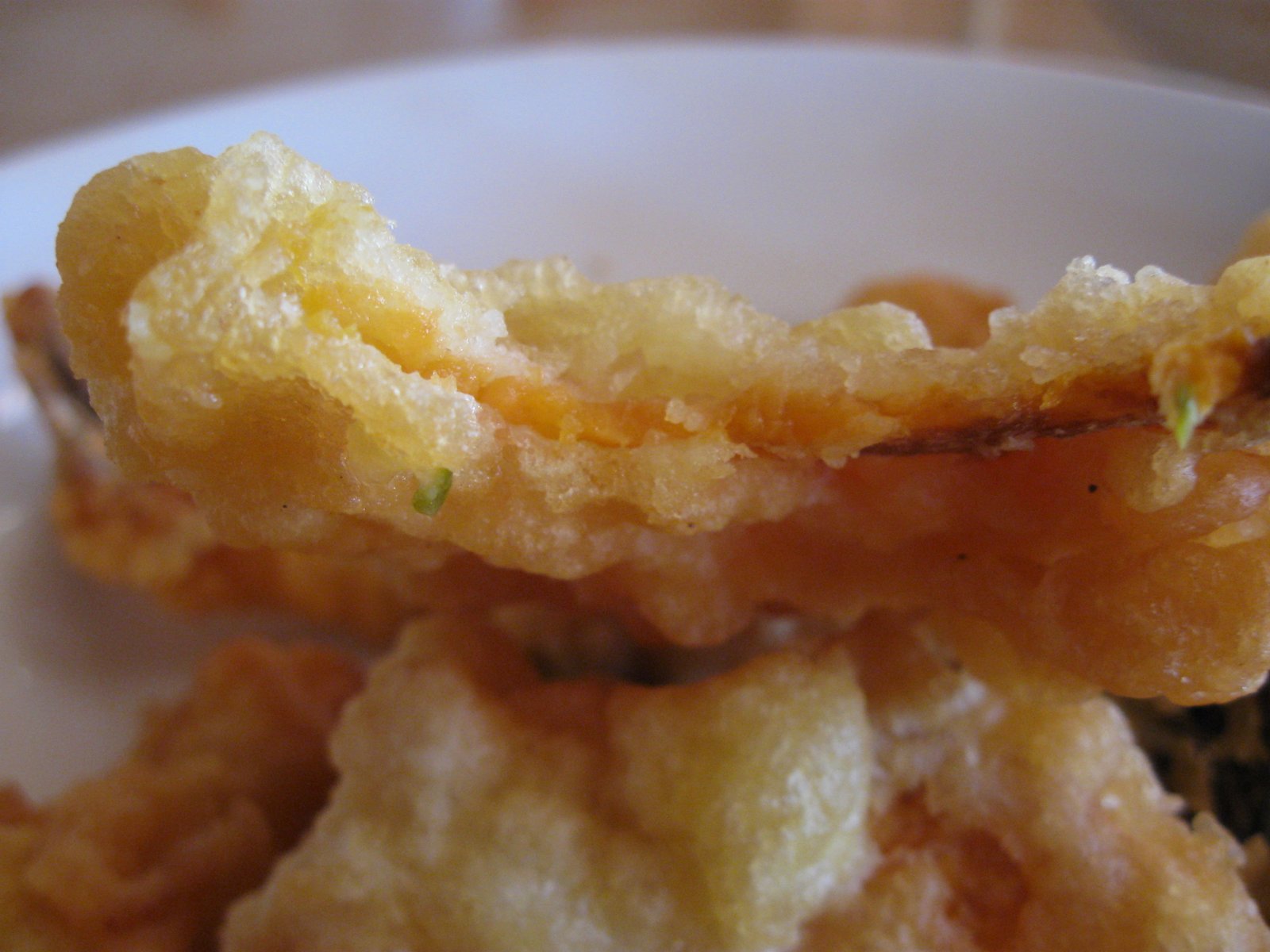 The next item I tried was a slice of, I think, sweet potato: What I mean is that it looked sort of like it had some sweet potato in at, but the paperthin vegetable was overwhelmed by the greasy coating.
