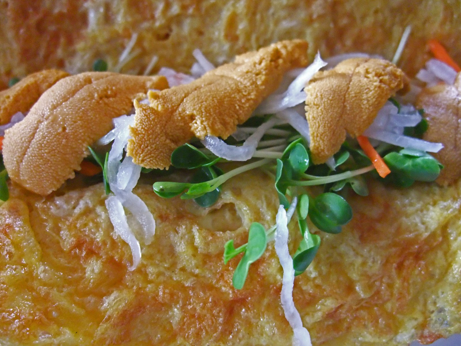 My objective was to not "kill" the wonderful, unique, and delicate flavor of the Uni. I wanted everything to be in harmony, yet not boring. I guess you'd call it "fusion" without "con-fusion".