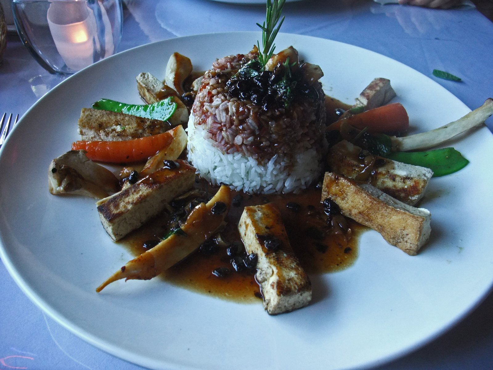 Tao05 I enjoyed the whole cloves of garlic, and the rice, a half red and jasmine rice was a nice touch, even though the rice wasn't particularly fragrant. The oyster mushrooms were ok, but nothing special. The tofu was too mild for this dish. For me good home made tofu should go off on one of two tangents. The first would be a wonderful silken tofu, that would be textural heaven. The second would be a firmer tofu that would have a pronounced "soy-beany" flavor. This had neither, and though the sauce, which tasted like basic black bean sauce, wasn't too salty, the tofu was lost in the sauce. For my taste, the tofu would be better served in dishes like the salad as it is very mild. This was not bad, but not outstanding.