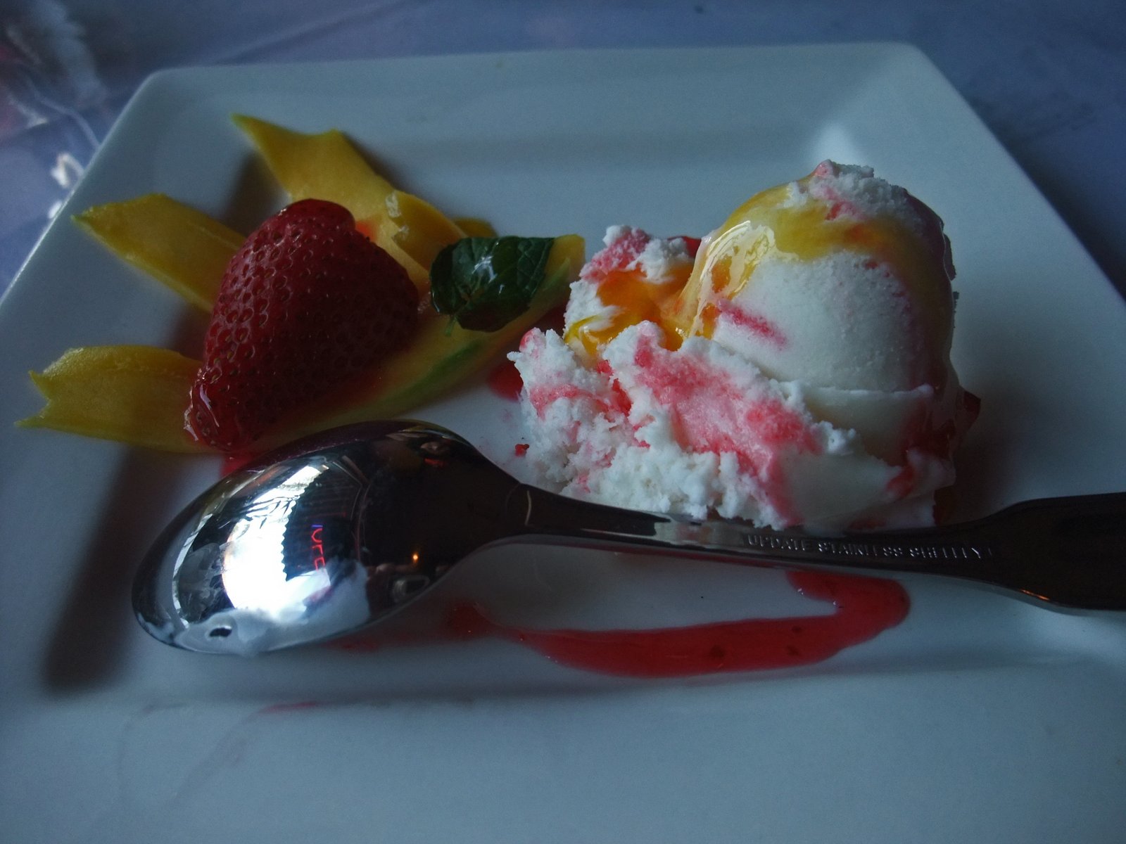 The young lady serving us instantly charmed us when she smiled and told us, "I'm sorry in advance, I've just started working here….." She did a good job, and in fact was a bit over-attentive but I'm sure she'll do well. It didn't hurt that she brought us some free "dessert" while we waited for our check.