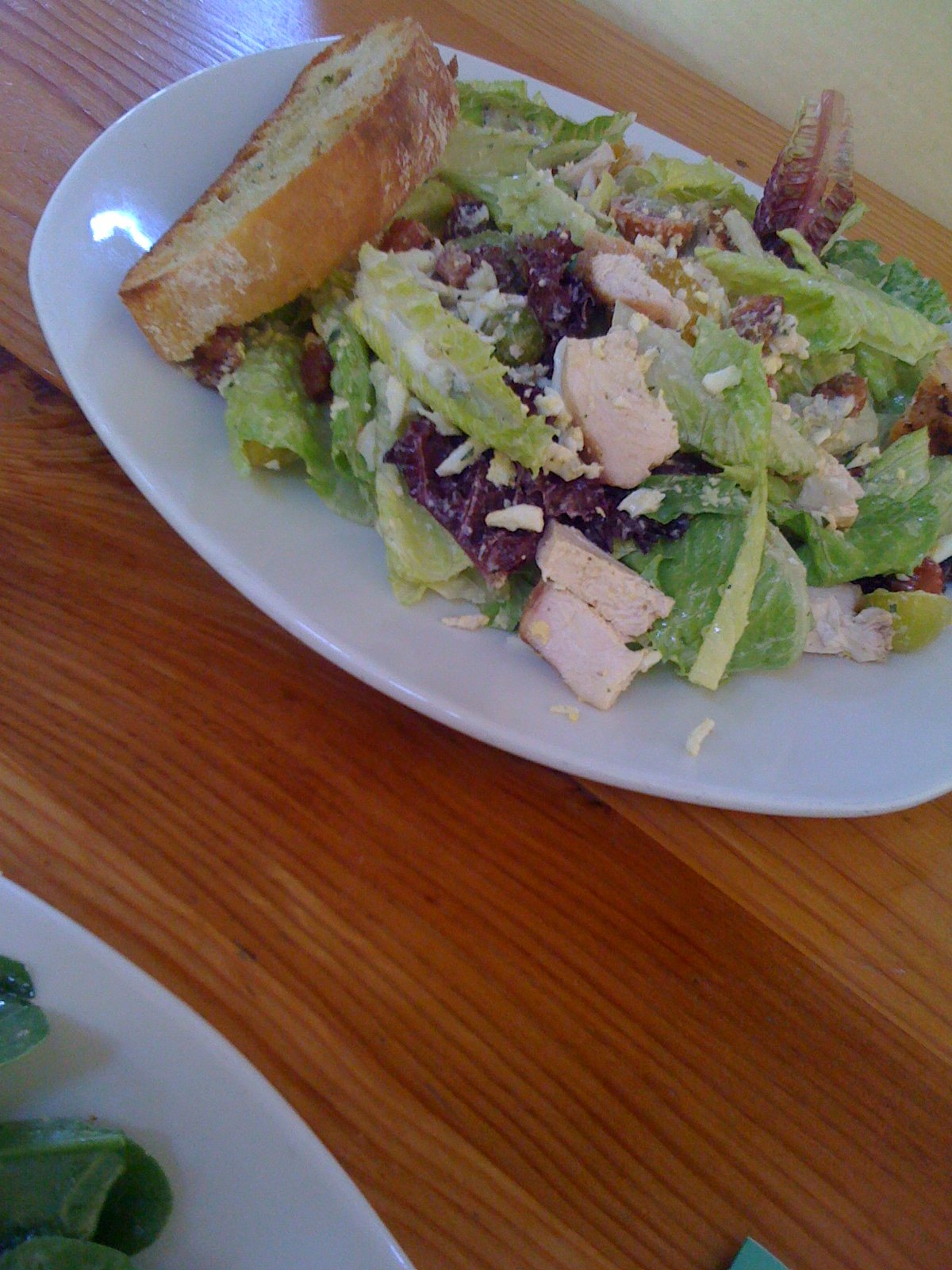 This is the Grilled Chicken Cobb ($10). It is made with Romaine, Point Reyes blue cheese, Heritage bacon (thick, large cubes of the cooked smoked, deep flavored bacon), avocado, egg, tomato and the dressing is not very garlic-y.