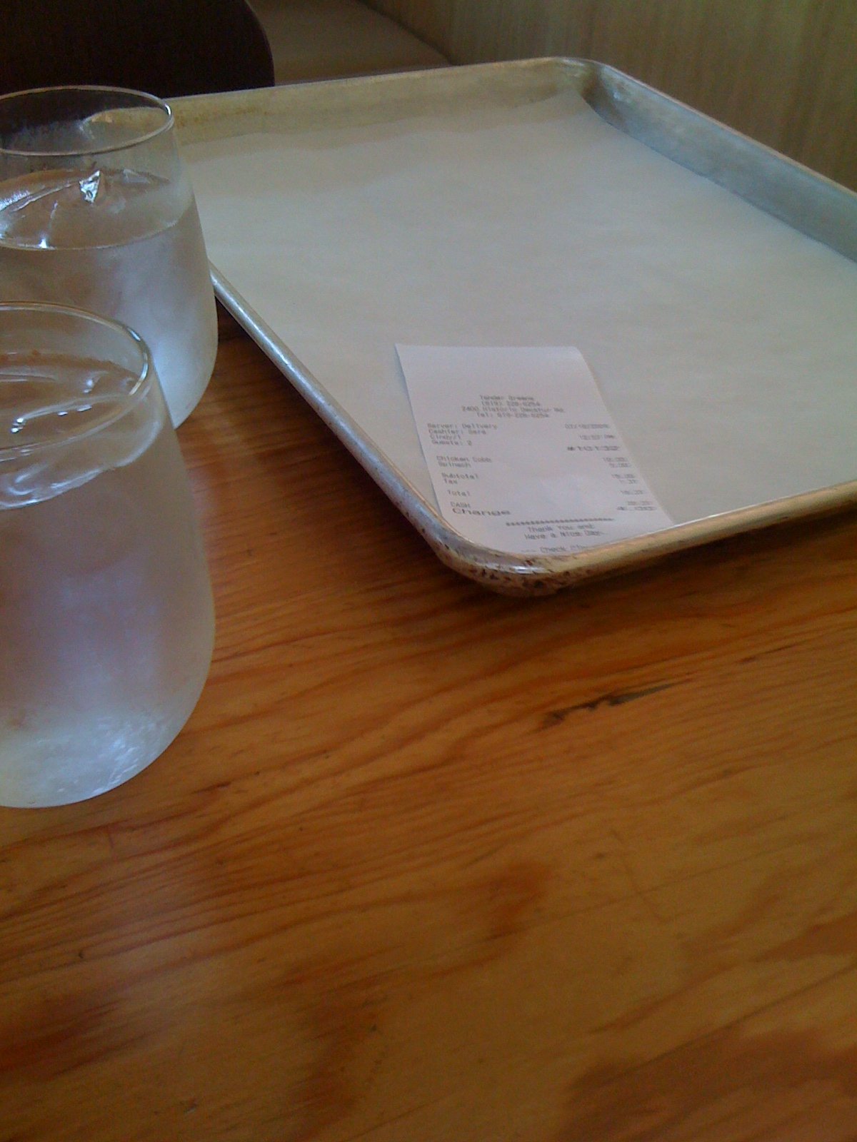The plates are given to you on these -jelly roll pans, and the water glasses are just so nice.